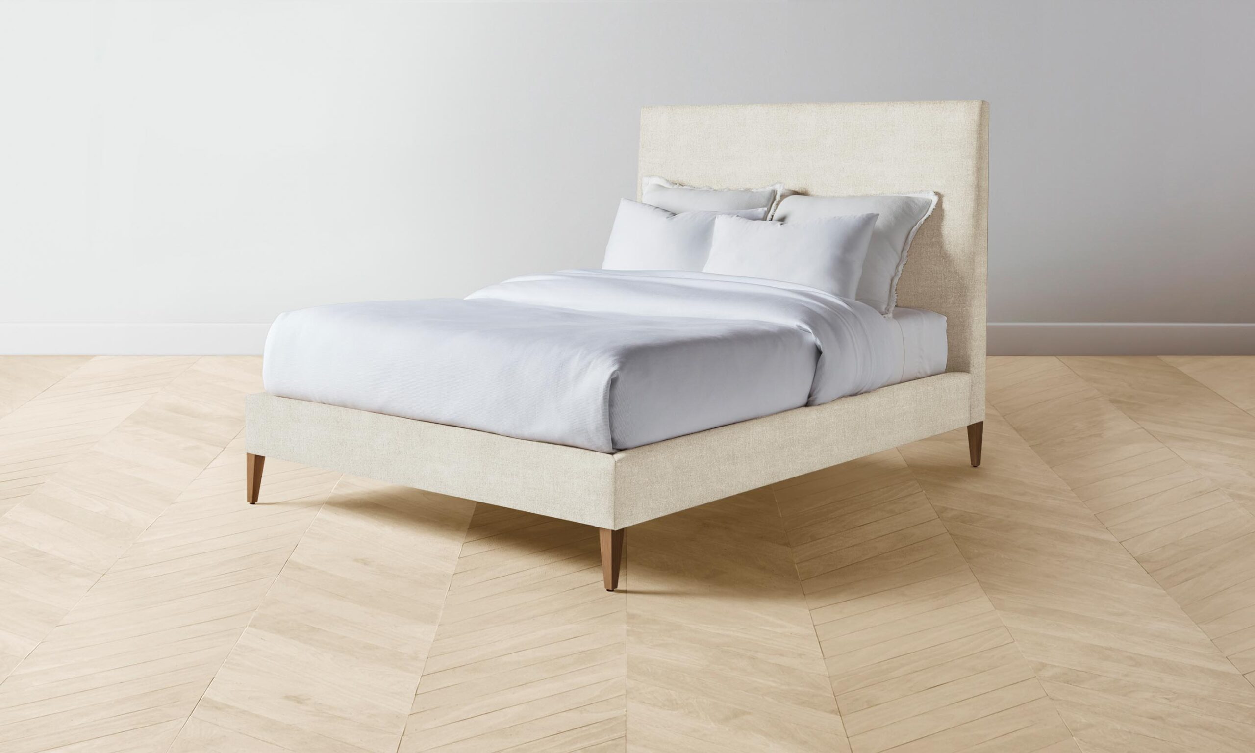 With its clean lines and neat tailoring, the Essex bed is timeless in the truest sense. It has a fully upholstered frame with mitered corners and rests upon elegantly tapered legs.