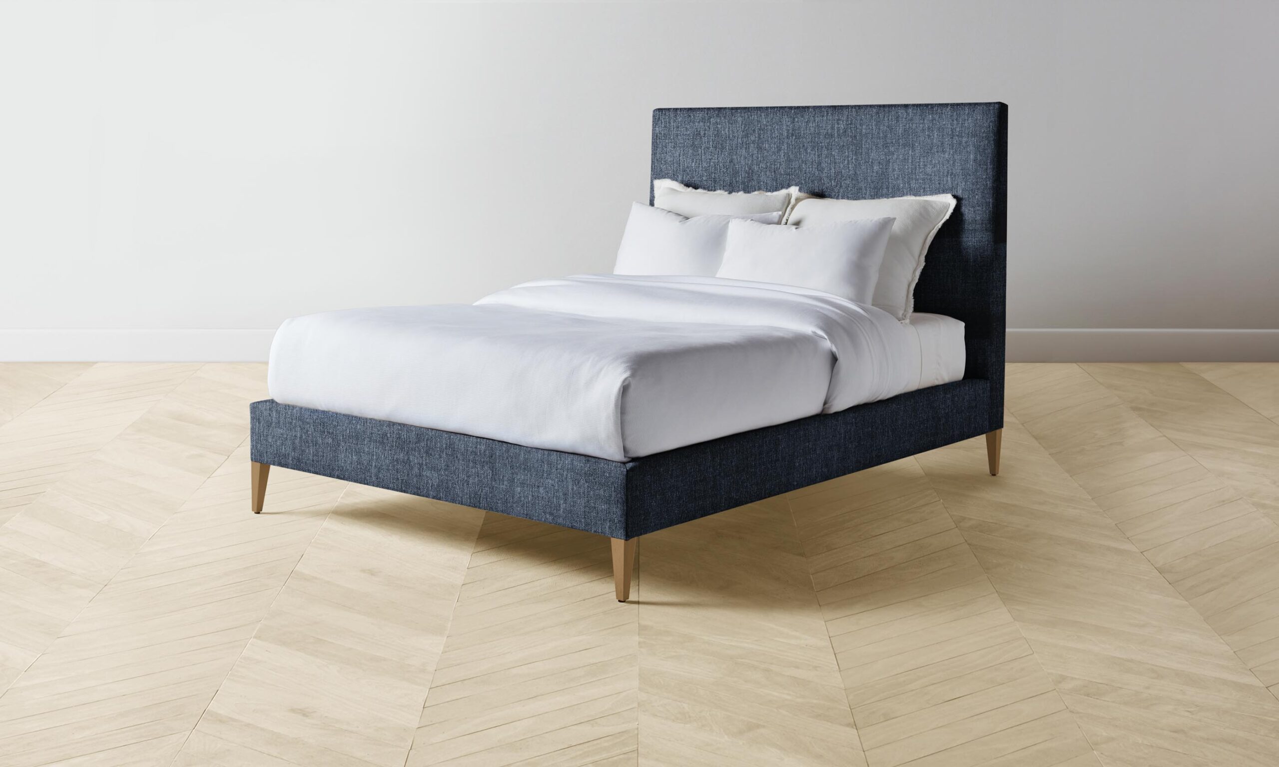 With its clean lines and neat tailoring, the Essex bed is timeless in the truest sense. It has a fully upholstered frame with mitered corners and rests upon elegantly tapered legs.