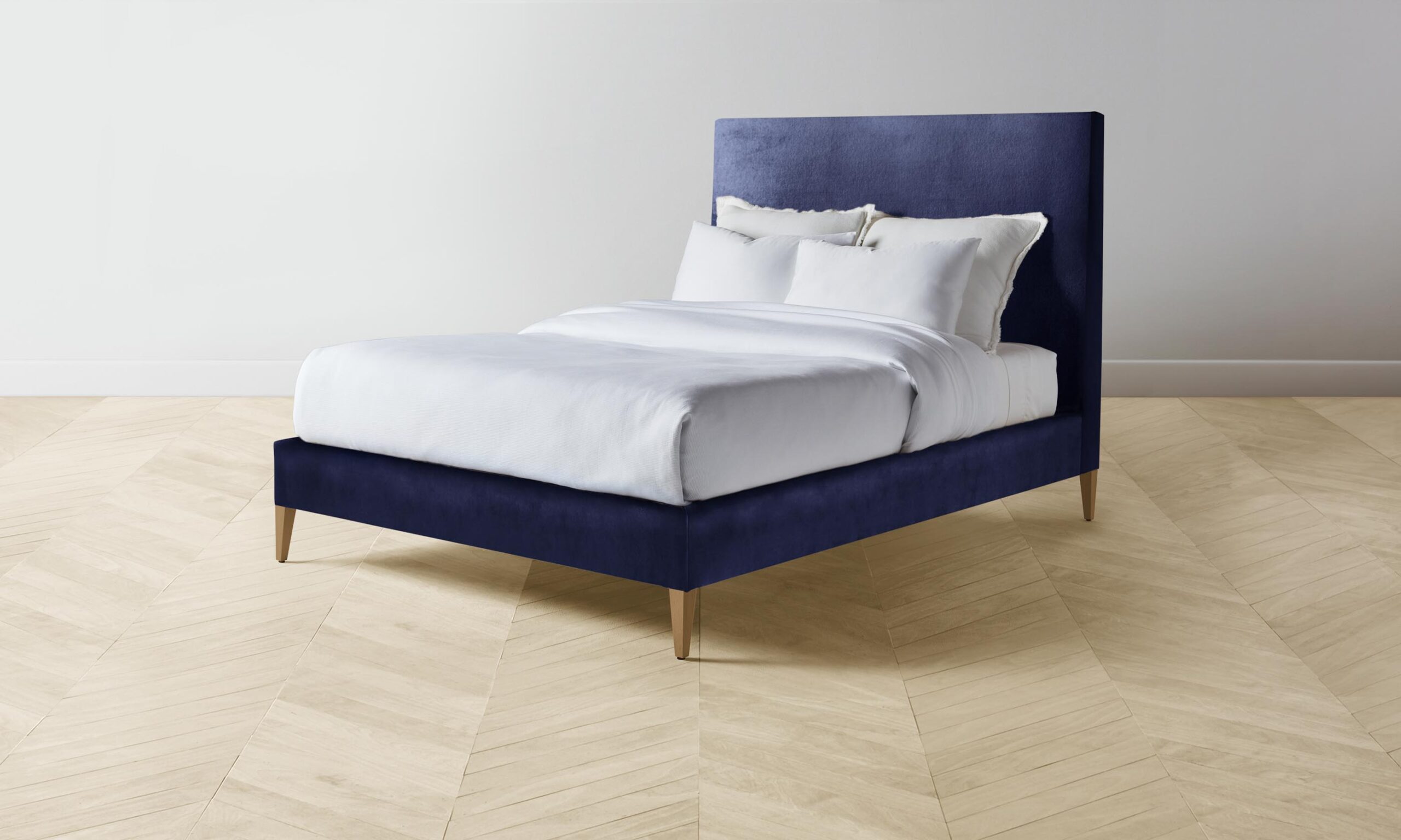 With its clean lines and neat tailoring, the Essex bed is timeless in the truest sense. It has a fully upholstered frame with mitered corners and rests upon elegantly tapered legs.
