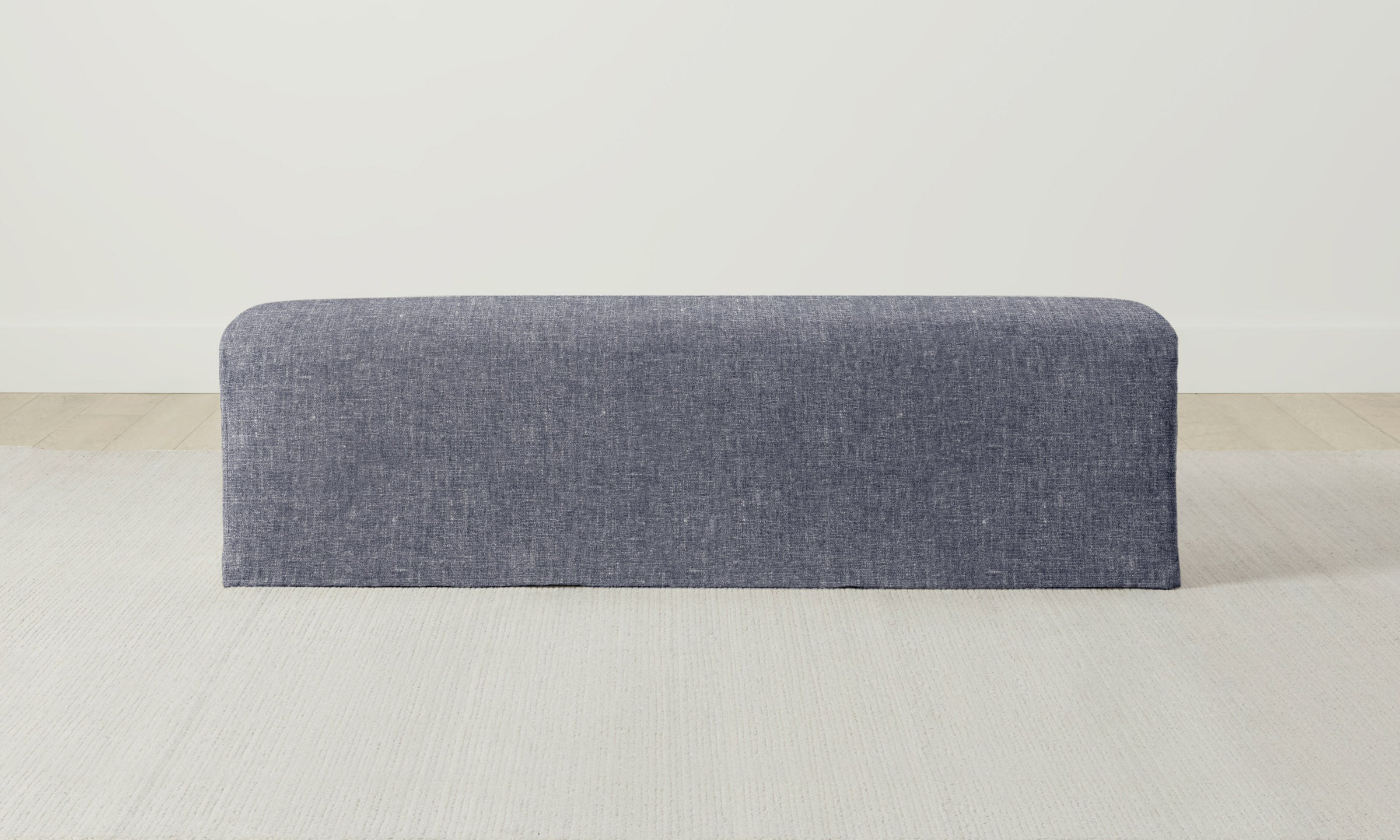 The Franklin bench is distinguished by its simplicity. It has an understated silhouette with a cushioned seat and hand-sewn slipcover that drapes softly to the floor.