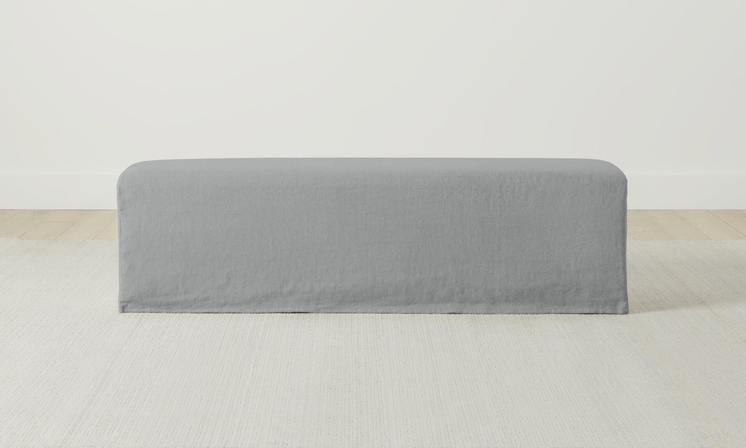 The Franklin bench is distinguished by its simplicity. It has an understated silhouette with a cushioned seat and hand-sewn slipcover that drapes softly to the floor.