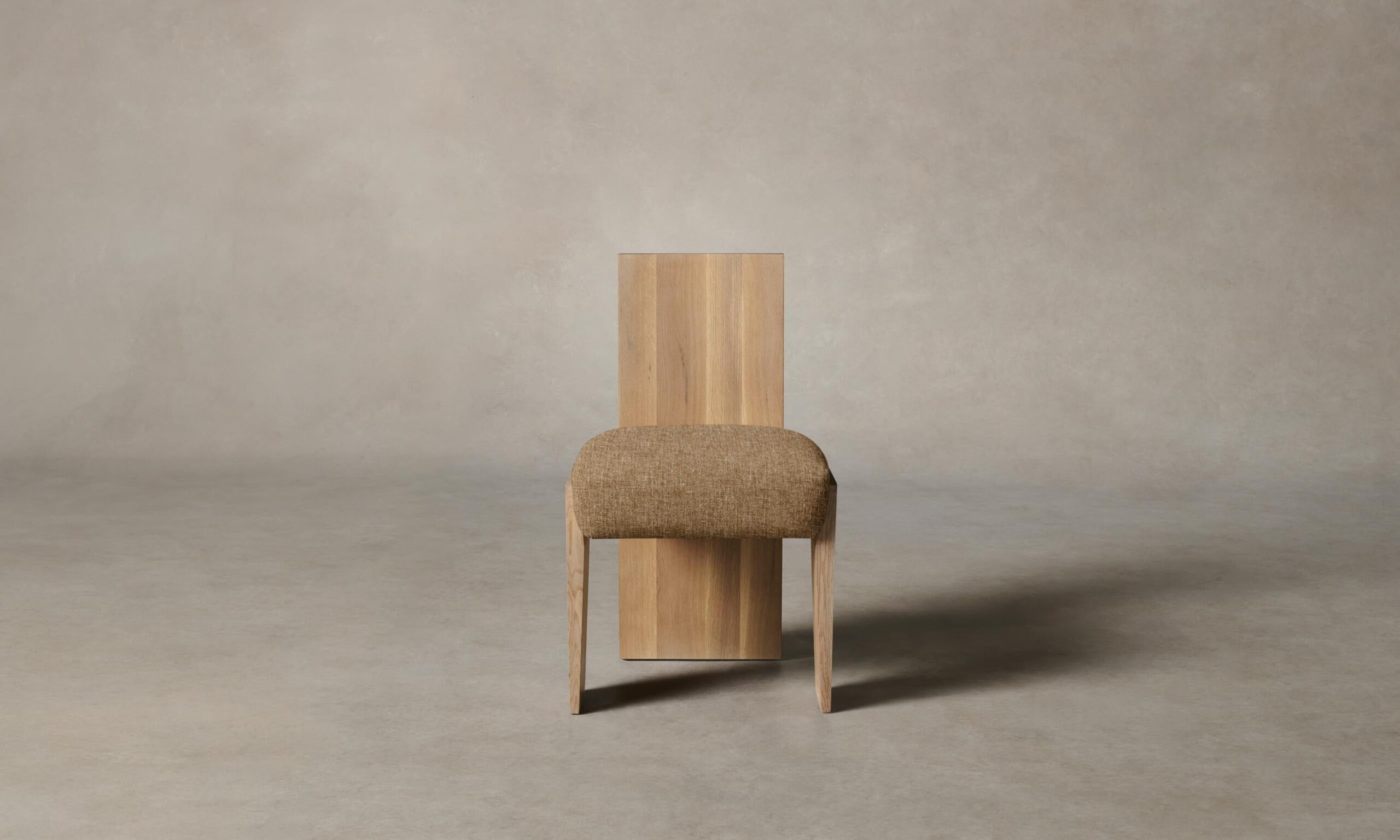 Strong and sophisticated in form, the Garrett dining chair stands on monolithic legs that underscore the beauty of solid walnut or white oak. Its seat is masterfully tailored for a clean finish.