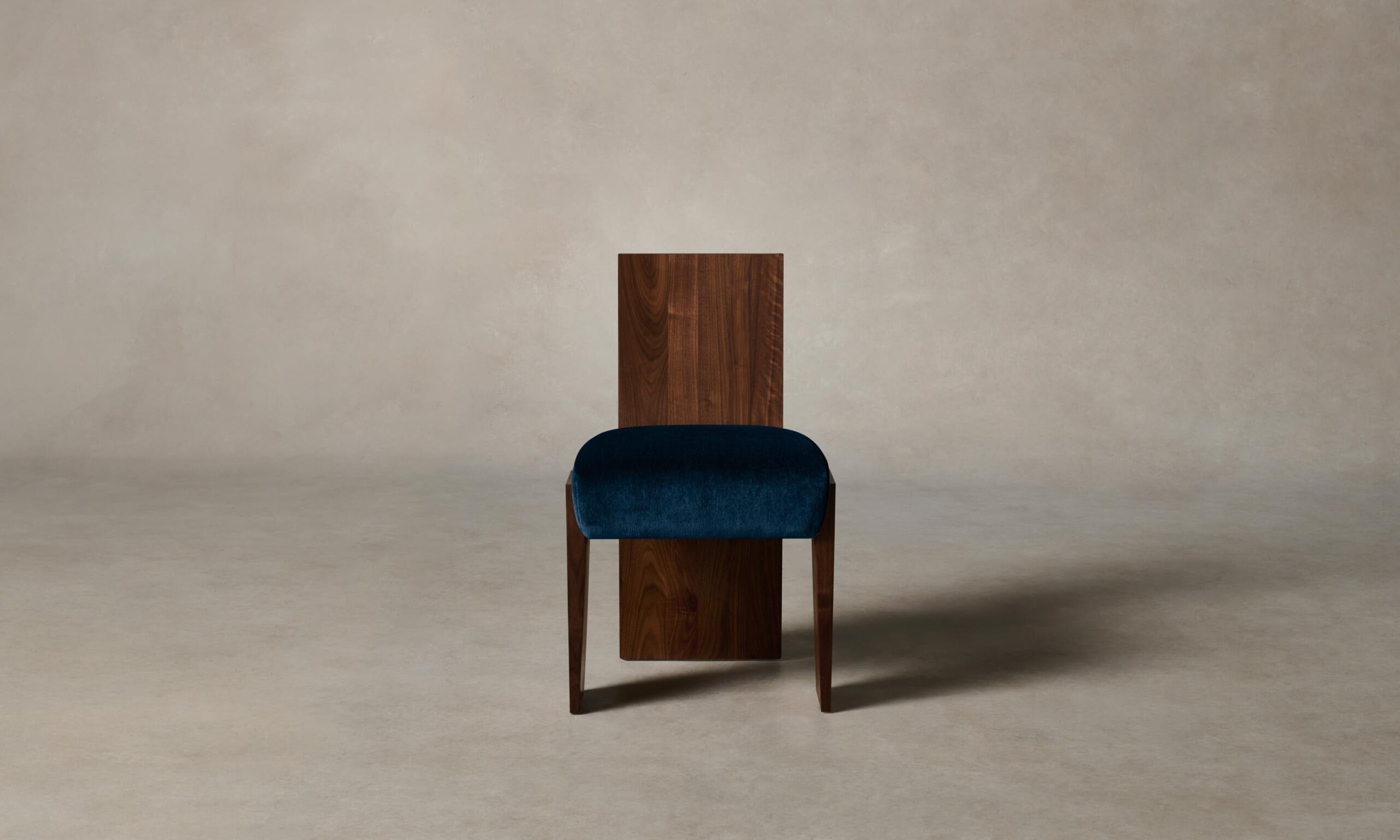 Strong and sophisticated in form, the Garrett dining chair stands on monolithic legs that underscore the beauty of solid walnut or white oak. Its seat is masterfully tailored for a clean finish.