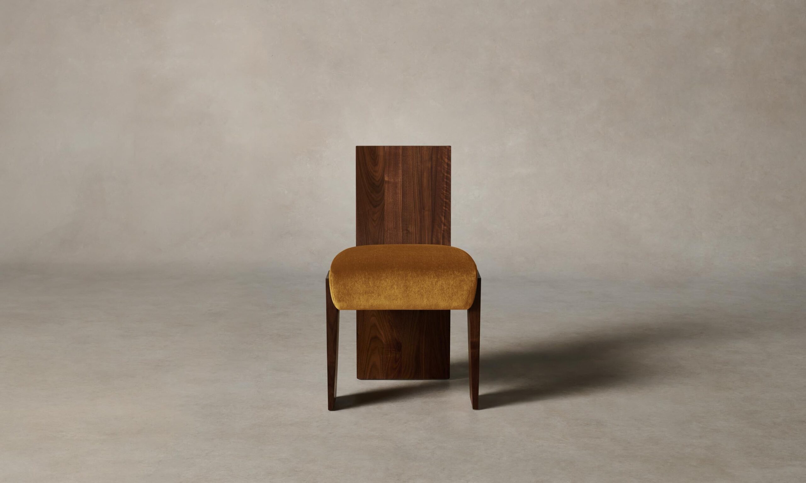 Strong and sophisticated in form, the Garrett dining chair stands on monolithic legs that underscore the beauty of solid walnut or white oak. Its seat is masterfully tailored for a clean finish.