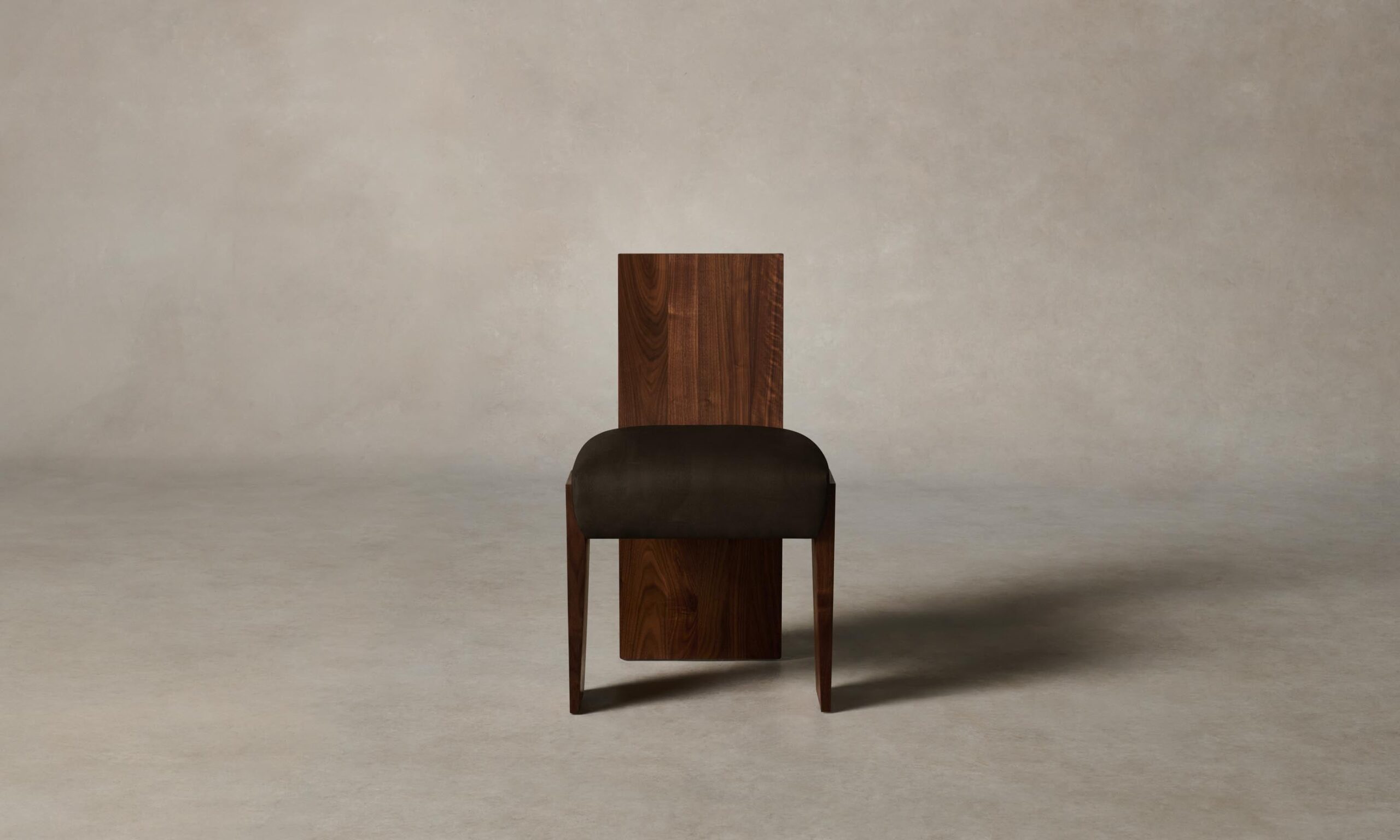 Strong and sophisticated in form, the Garrett dining chair stands on monolithic legs that underscore the beauty of solid walnut or white oak. Its seat is masterfully tailored for a clean finish.