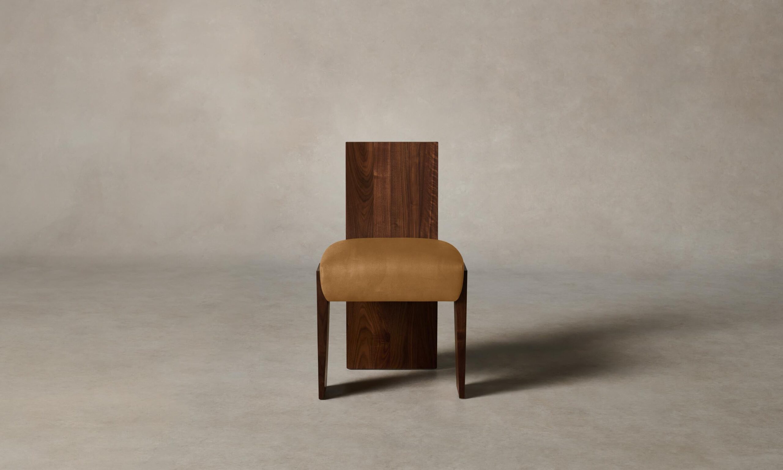 Strong and sophisticated in form, the Garrett dining chair stands on monolithic legs that underscore the beauty of solid walnut or white oak. Its seat is masterfully tailored for a clean finish.