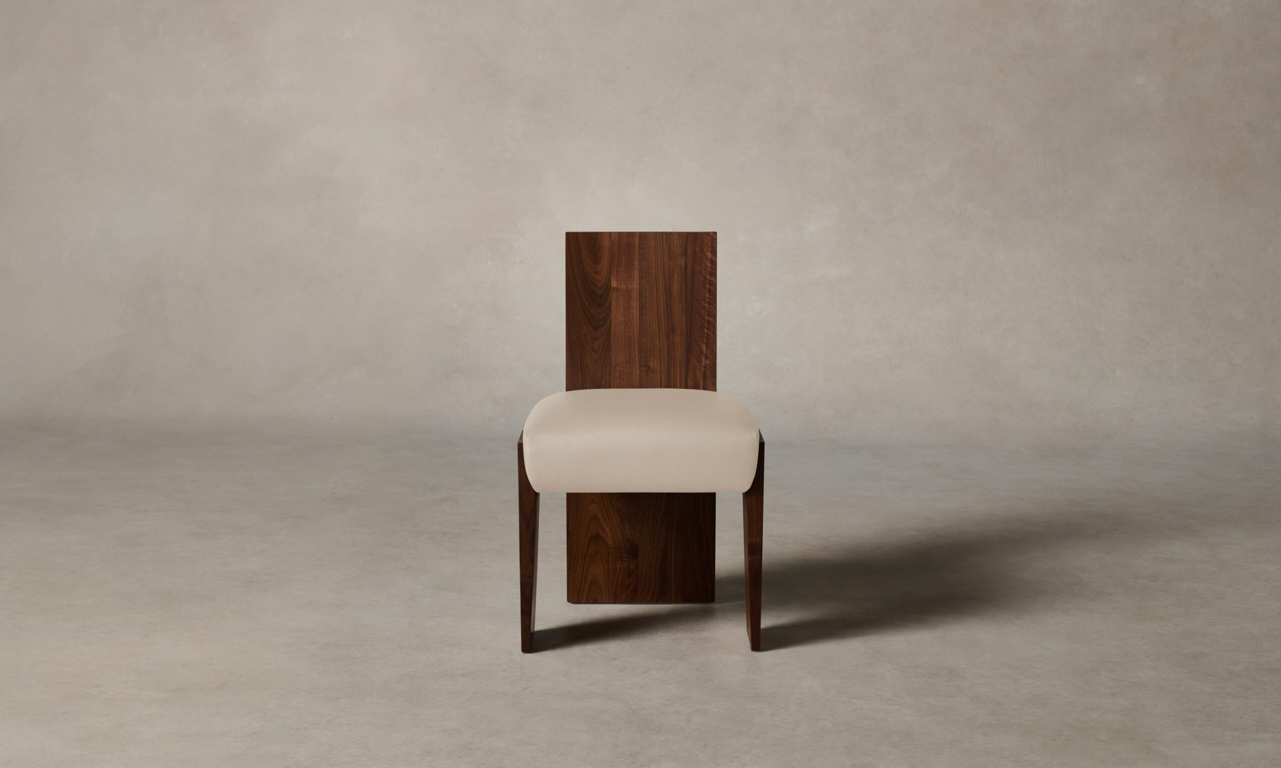 Strong and sophisticated in form, the Garrett dining chair stands on monolithic legs that underscore the beauty of solid walnut or white oak. Its seat is masterfully tailored for a clean finish.