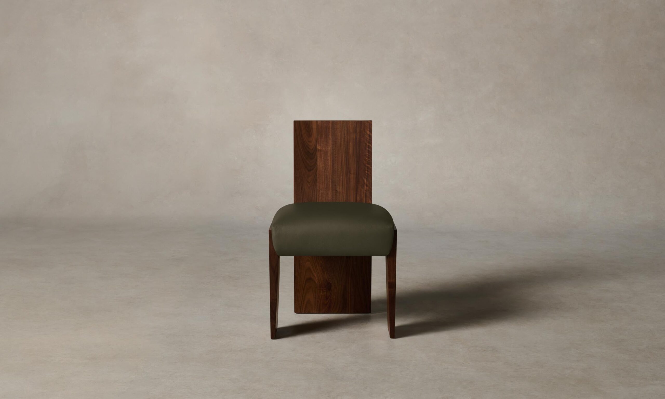 Strong and sophisticated in form, the Garrett dining chair stands on monolithic legs that underscore the beauty of solid walnut or white oak. Its seat is masterfully tailored for a clean finish.