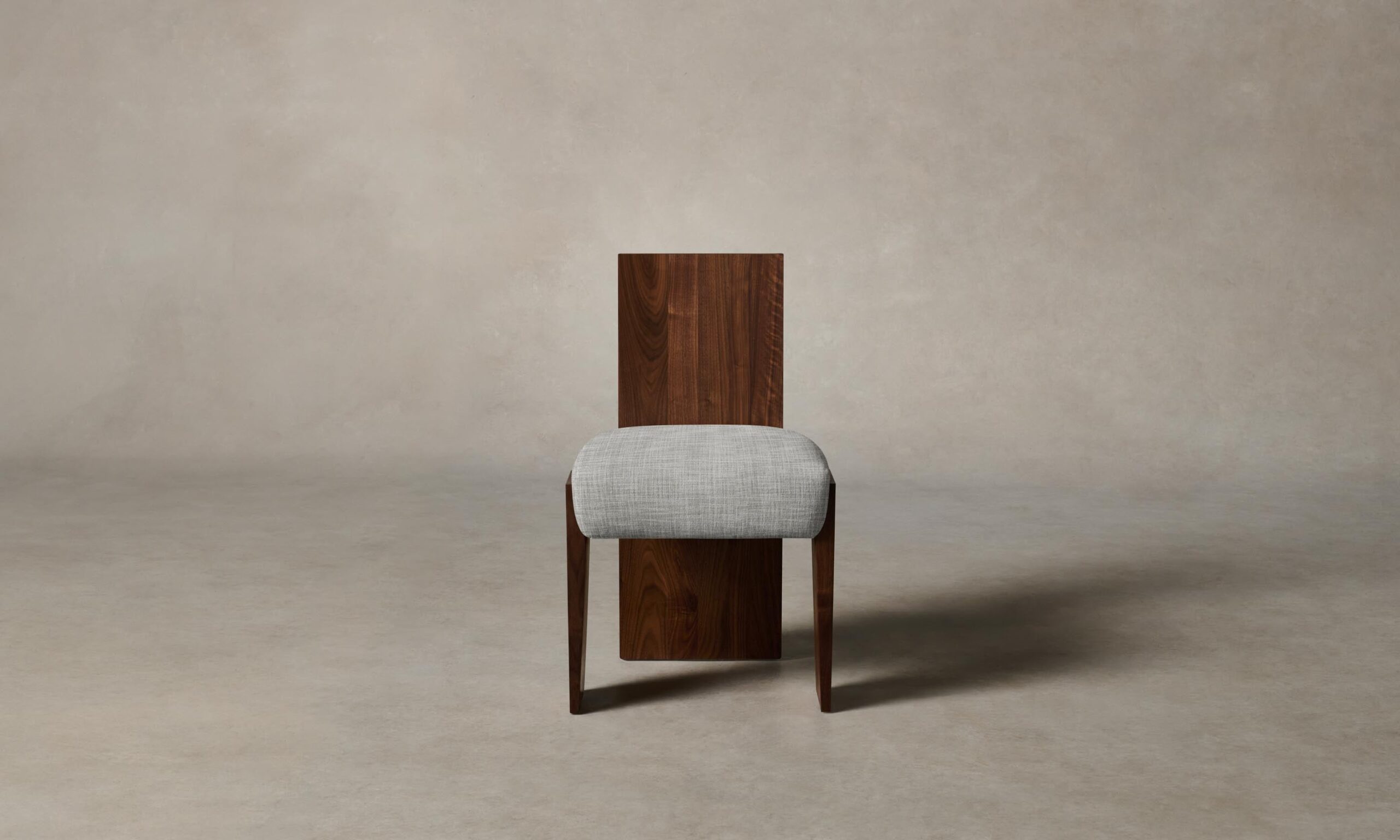 Strong and sophisticated in form, the Garrett dining chair stands on monolithic legs that underscore the beauty of solid walnut or white oak. Its seat is masterfully tailored for a clean finish.