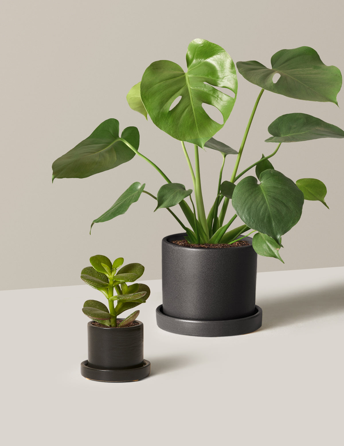 Save when you buy a bundle! This iconic duo is the perfect accent for any sunny space. Although different sizes, both plants are big in personality. A cute succulent of our grower’s choice, paired with the Monstera deliciosa, famous for its broad green leaves with fenestrations. Available with matching Hyde ceramic planters.