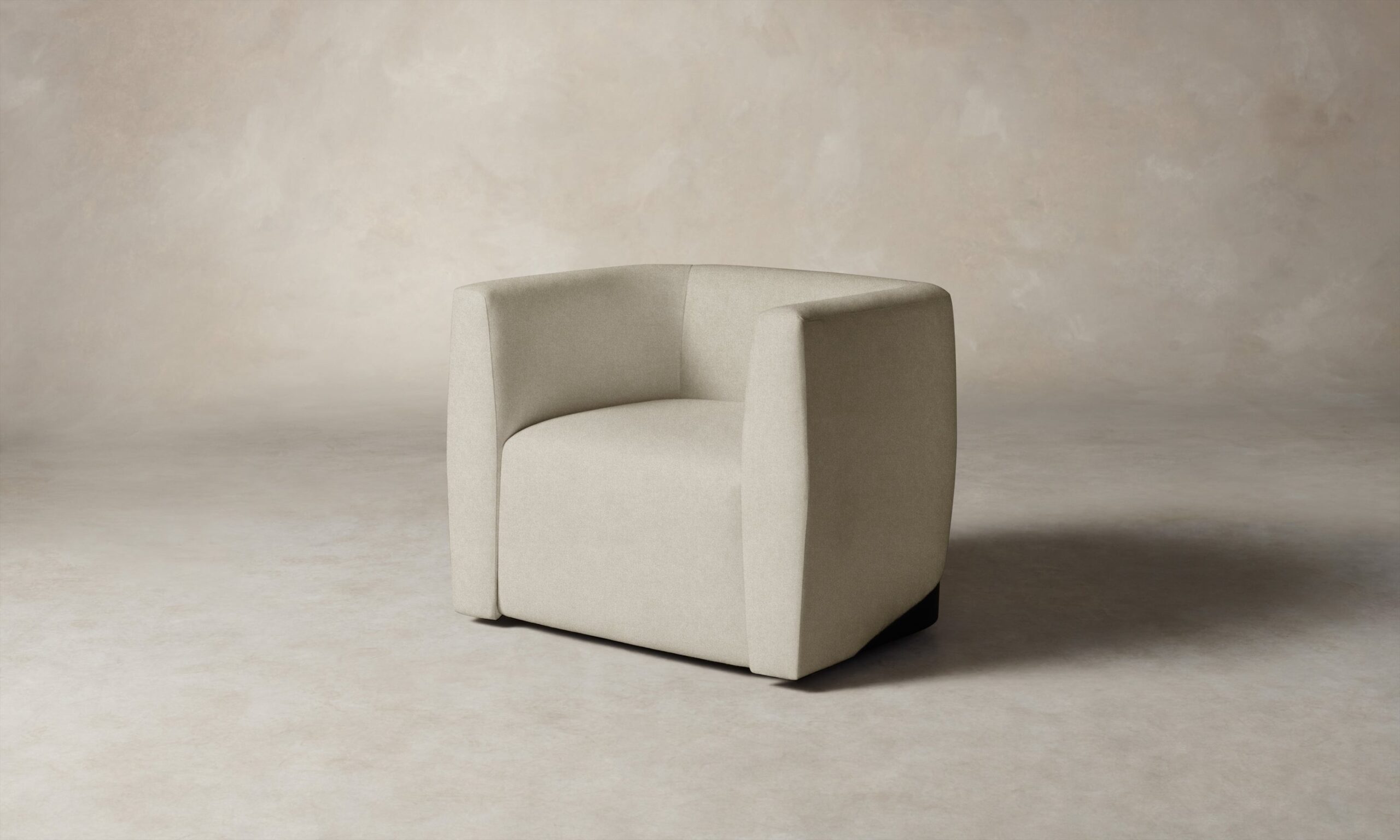 The Henri swivel chair offers intrigue at every angle. With convex arms that wrap around a low-slung seat, it turns to reveal an exquisite white oak or walnut accent at the base.