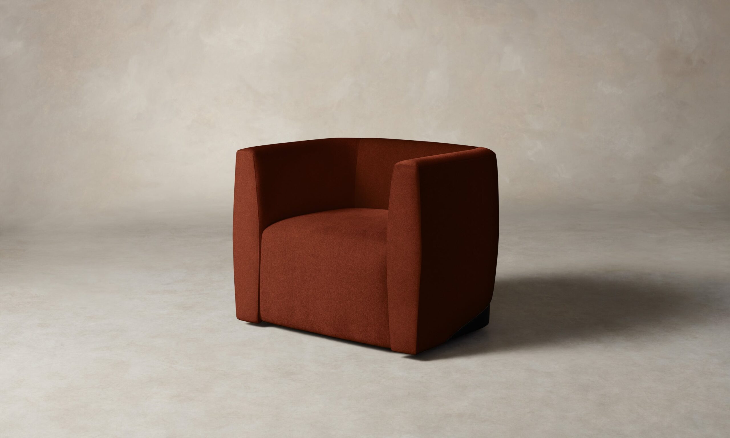 The Henri swivel chair offers intrigue at every angle. With convex arms that wrap around a low-slung seat, it turns to reveal an exquisite white oak or walnut accent at the base.