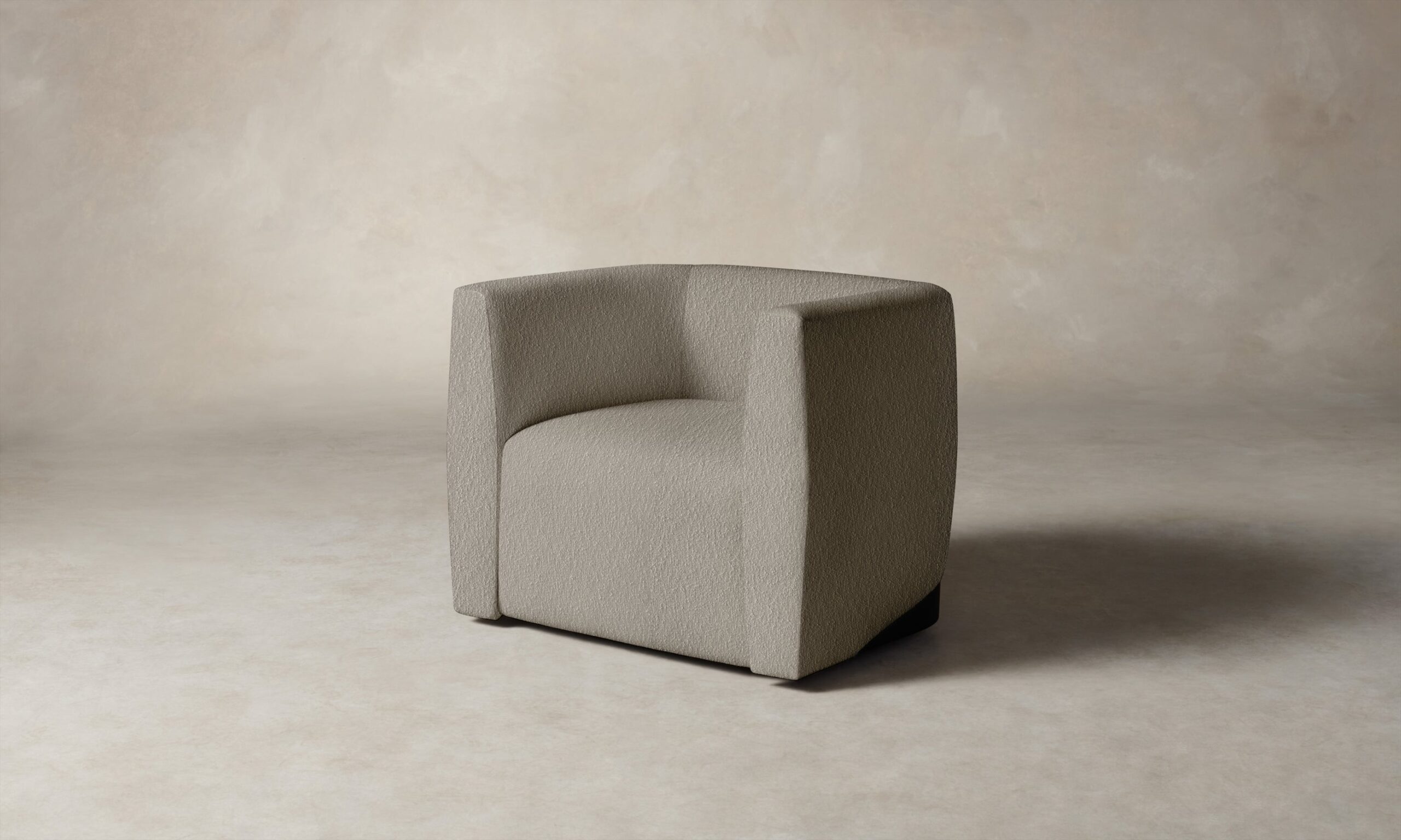 The Henri swivel chair offers intrigue at every angle. With convex arms that wrap around a low-slung seat, it turns to reveal an exquisite white oak or walnut accent at the base.