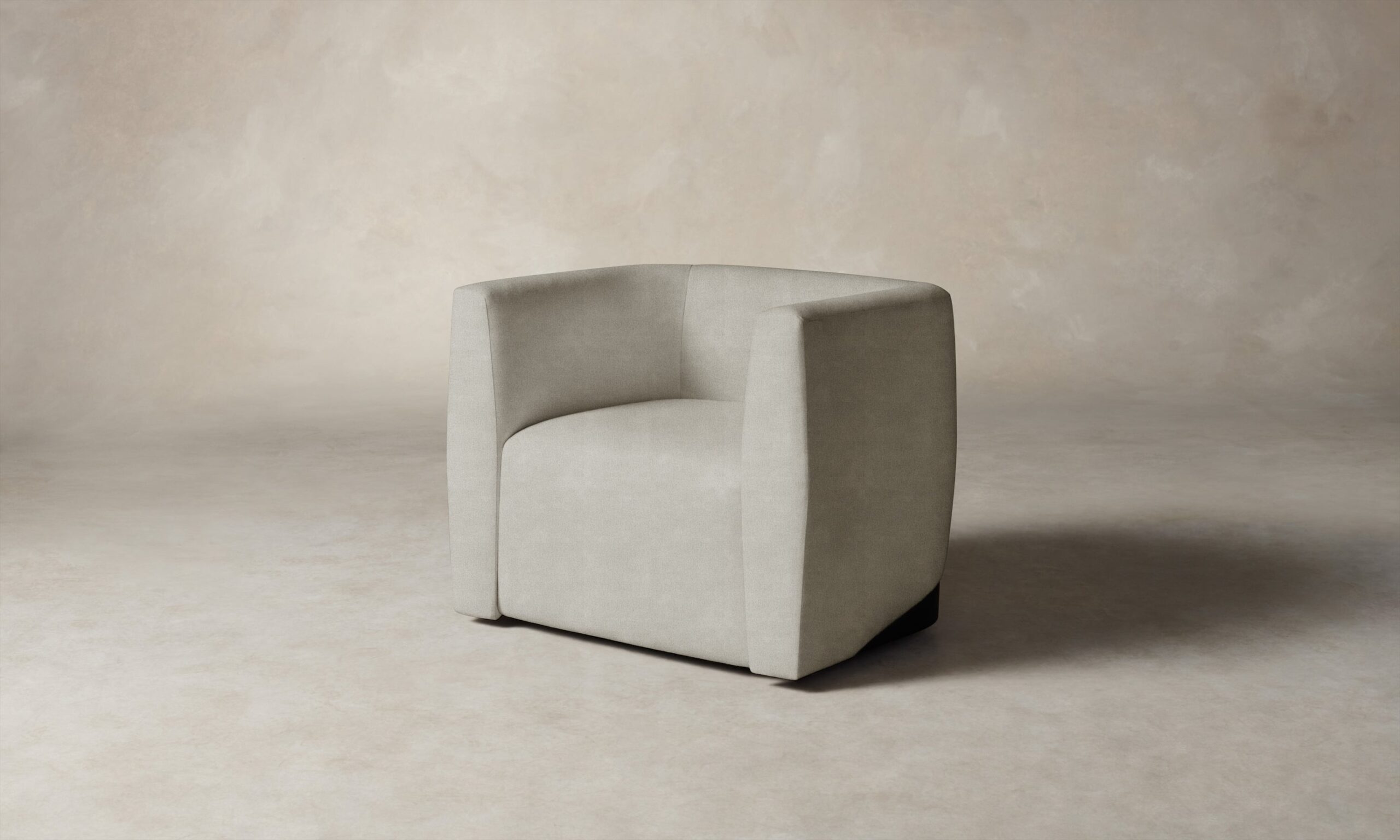 The Henri swivel chair offers intrigue at every angle. With convex arms that wrap around a low-slung seat, it turns to reveal an exquisite white oak or walnut accent at the base.