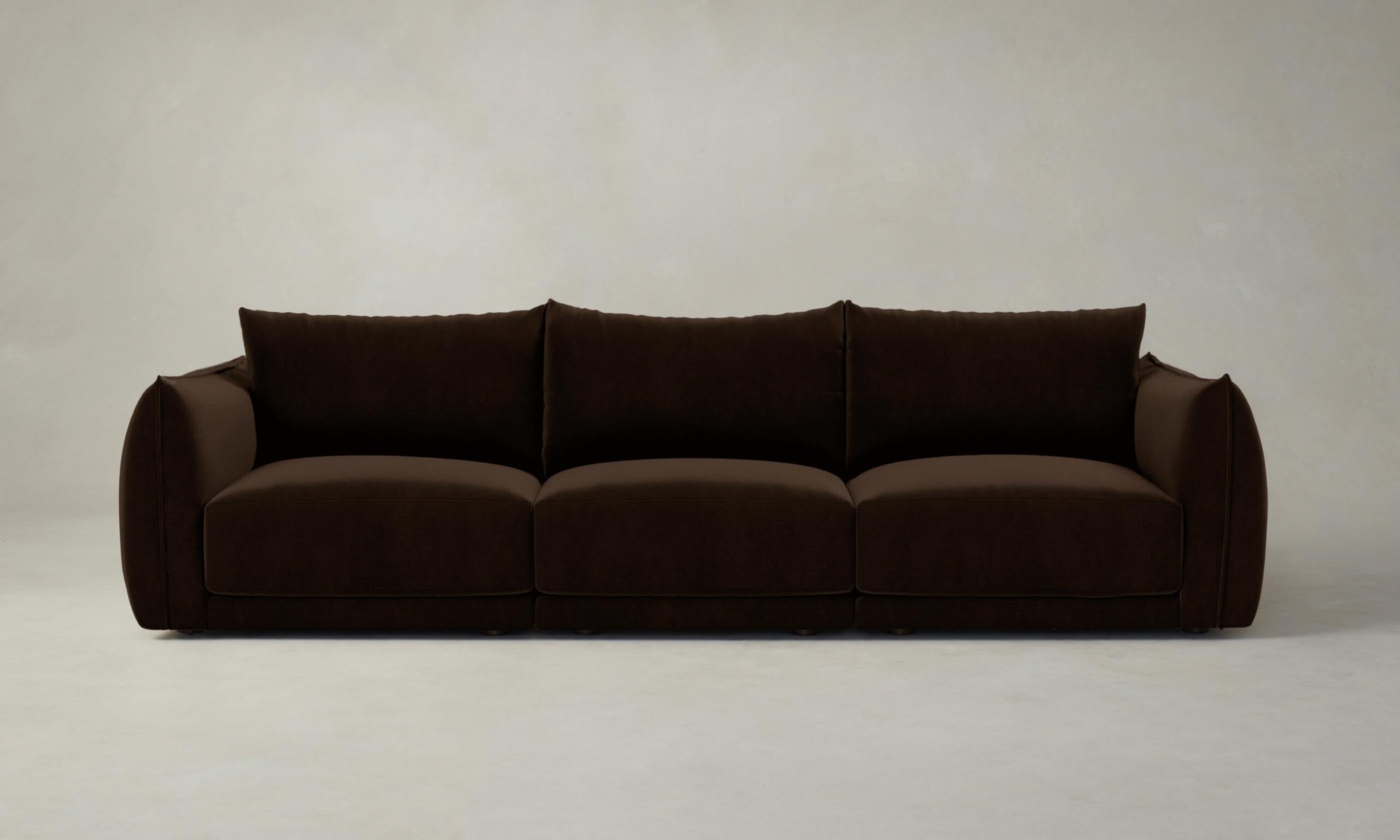 The Jones sectional’s low-lying, modular design recalls silhouettes from the 1970s. It has voluminous cushions and plush arms complete with flange seams for a tailored finish.