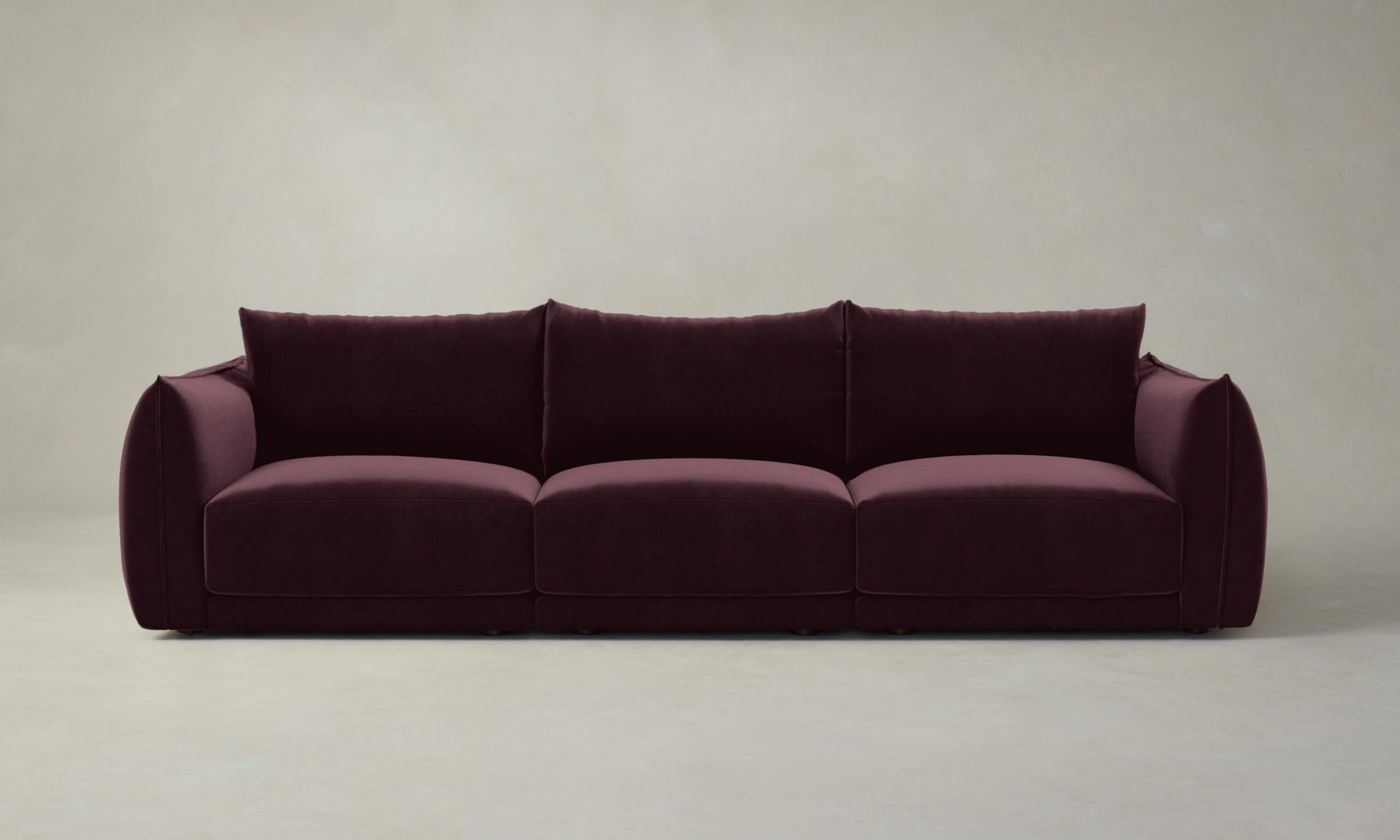 The Jones sectional’s low-lying, modular design recalls silhouettes from the 1970s. It has voluminous cushions and plush arms complete with flange seams for a tailored finish.