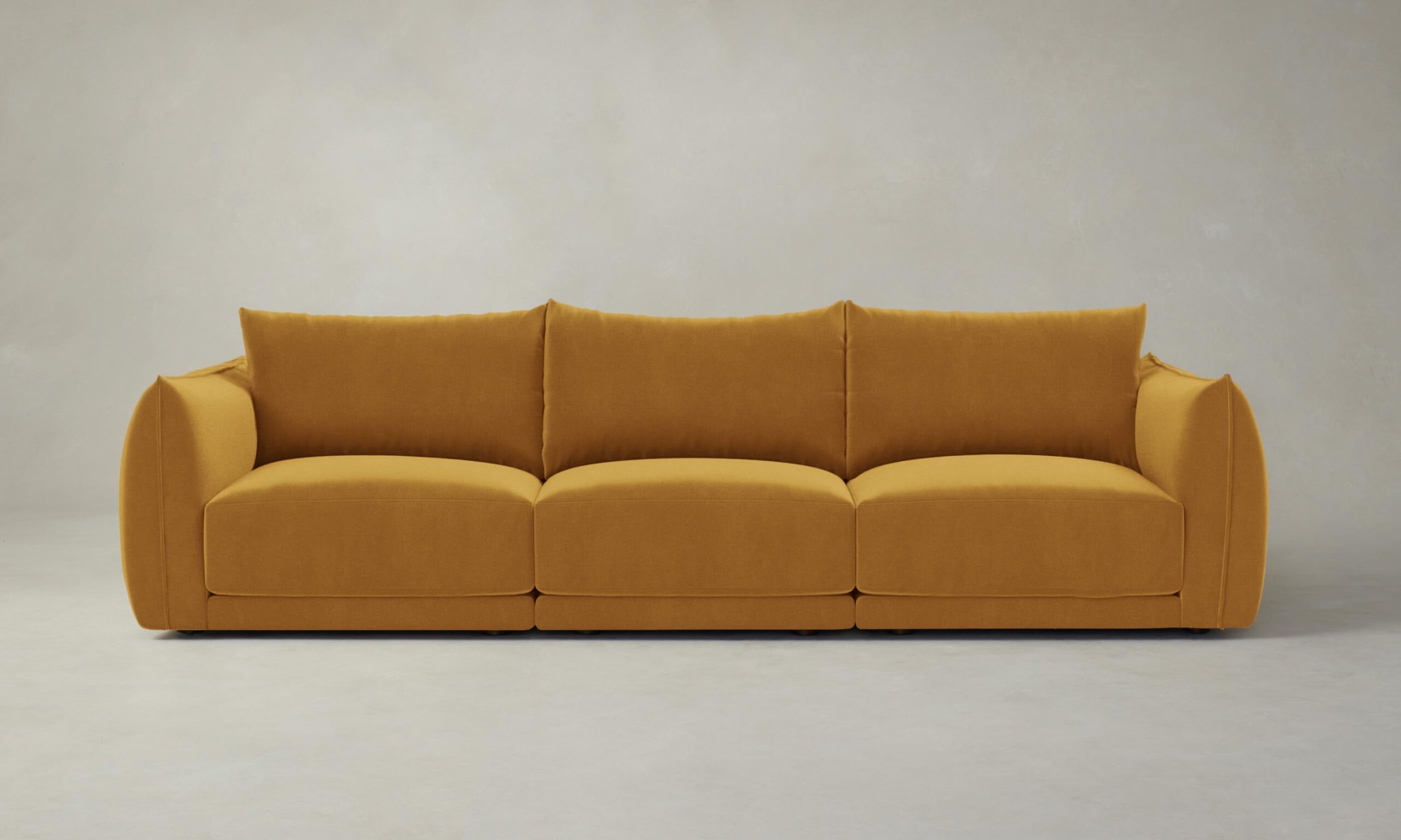 The Jones sofa’s low-lying, modular design recalls silhouettes from the 1970s. It has voluminous cushions and plush arms complete with flange seams for a tailored finish.