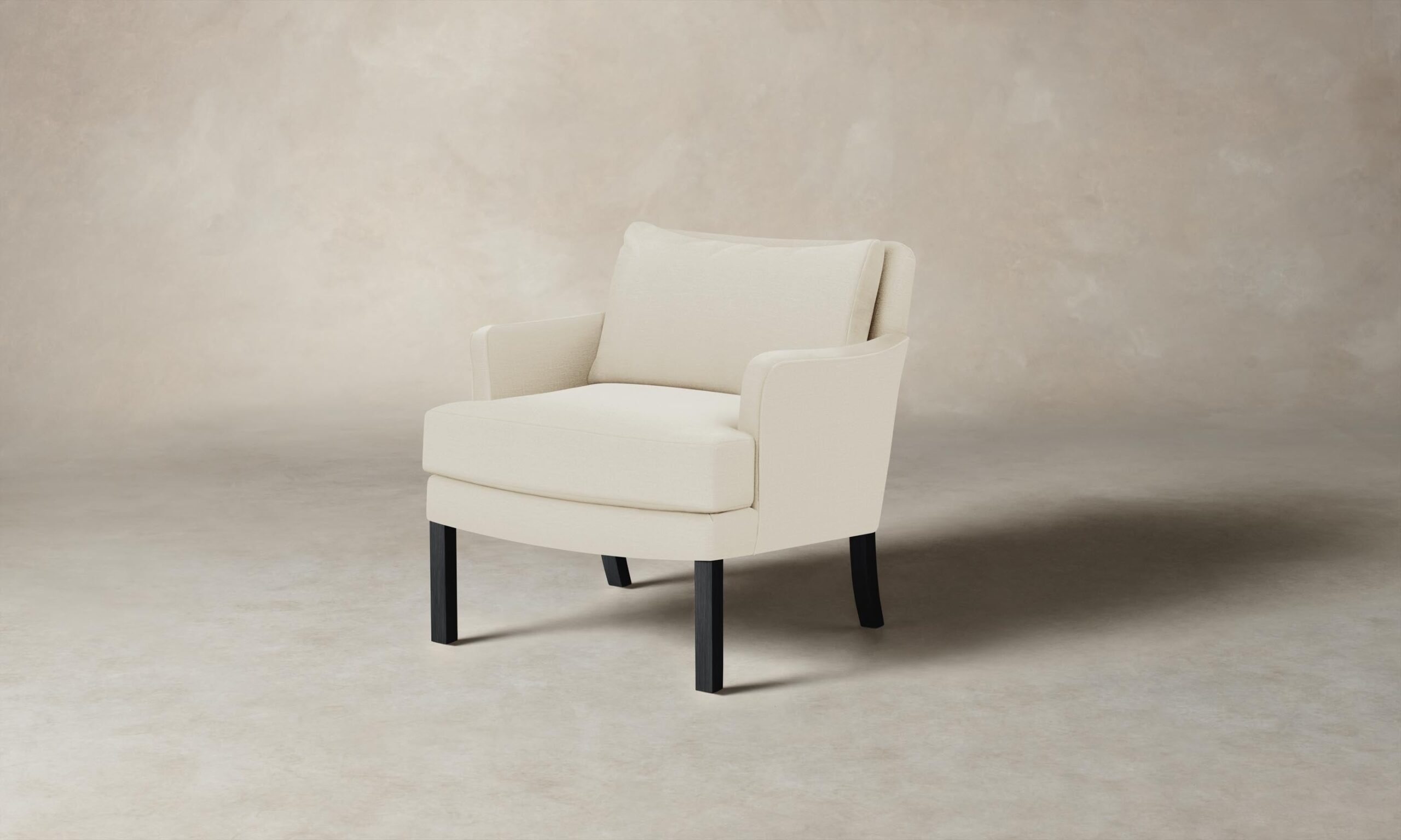 The Kaye chair pays homage to mid-century Danish design with its simple form. Gently curved along the back and arms, it envelops the body in masterful upholstery and generous cushioning. Slender white oak legs lend the design a classic appeal.