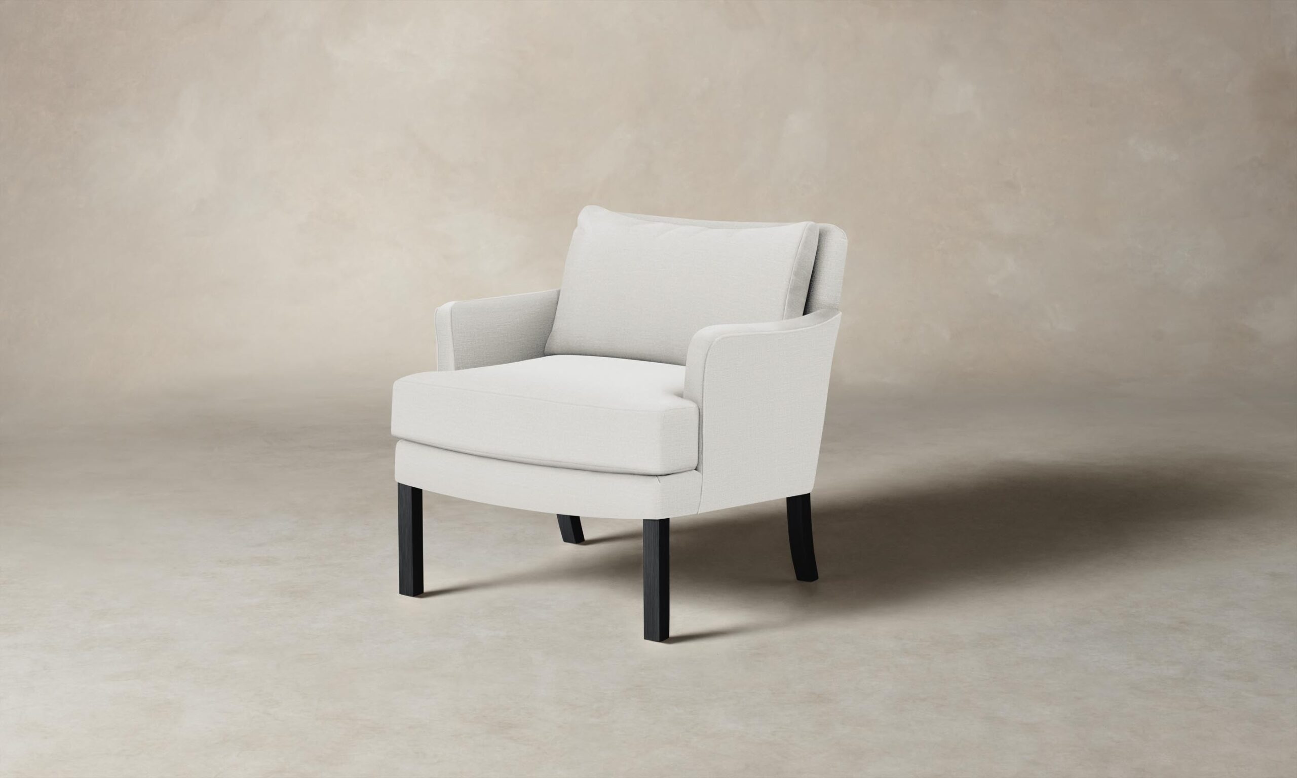 The Kaye chair pays homage to mid-century Danish design with its simple form. Gently curved along the back and arms, it envelops the body in masterful upholstery and generous cushioning. Slender white oak legs lend the design a classic appeal.