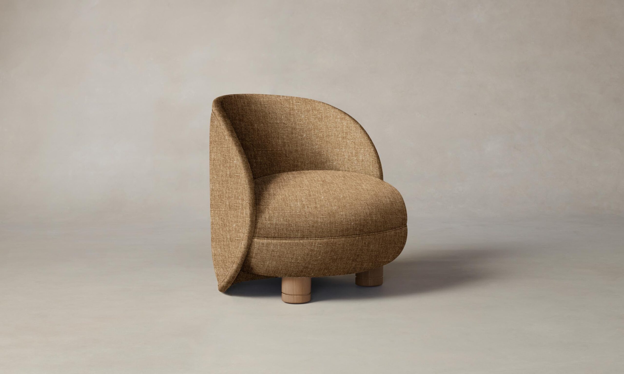 The Laight reimagines the classic slipper chair with a new sense of softness and whimsy. It has a curved, wraparound back and voluminous seat that sits atop lathe-turned legs.
