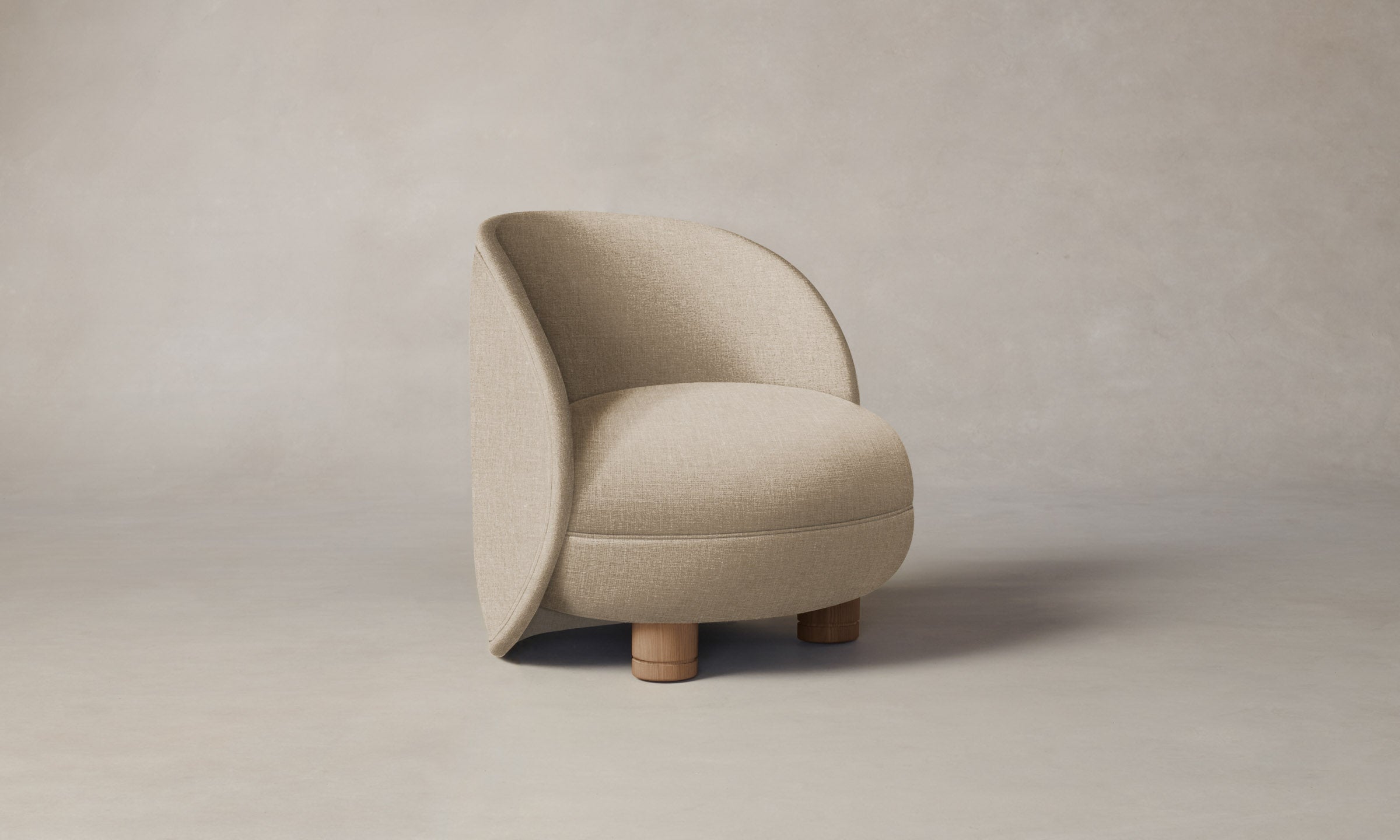 The Laight reimagines the classic slipper chair with a new sense of softness and whimsy. It has a curved, wraparound back and voluminous seat that sits atop lathe-turned legs.
