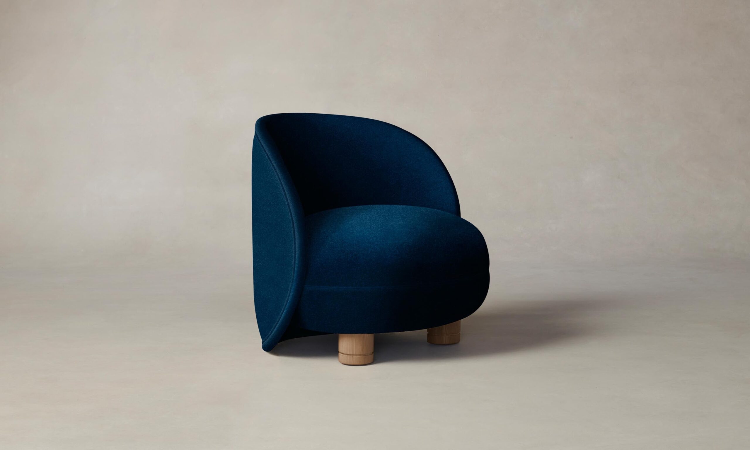 The Laight reimagines the classic slipper chair with a new sense of softness and whimsy. It has a curved, wraparound back and voluminous seat that sits atop lathe-turned legs.