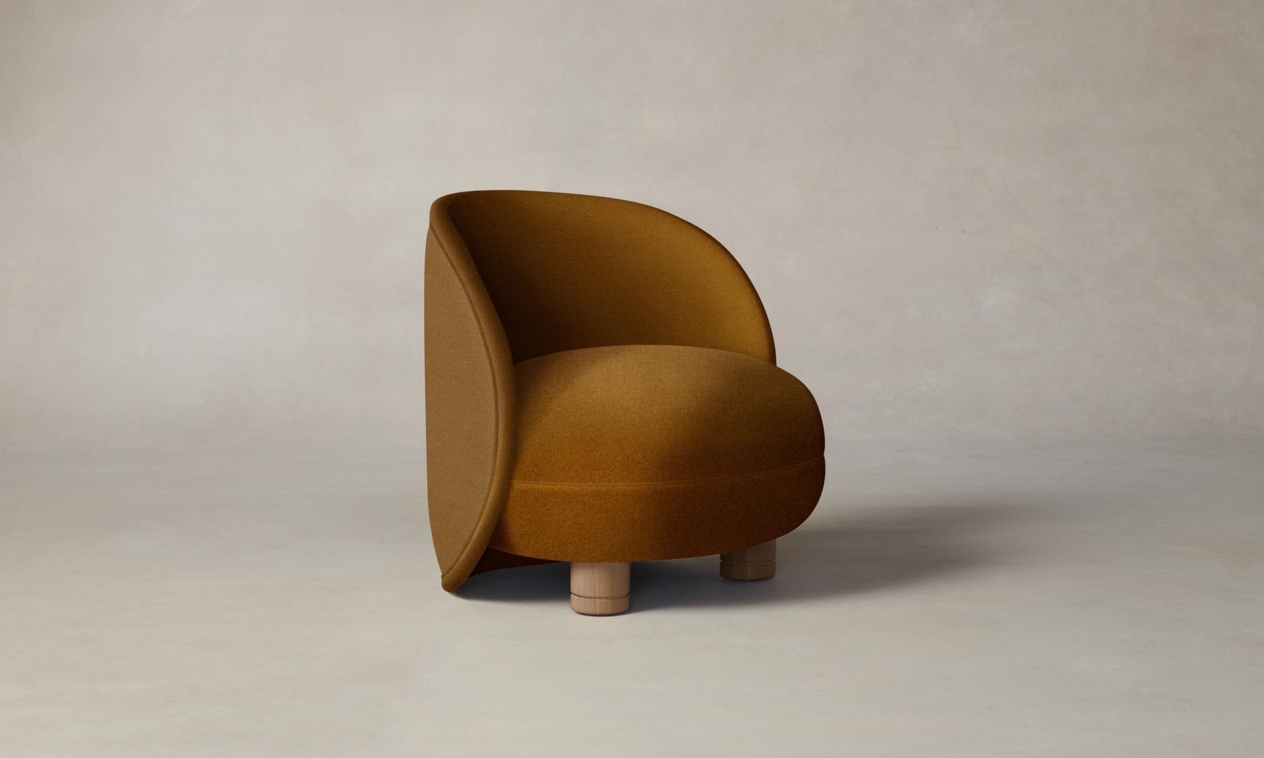 The Laight reimagines the classic slipper chair with a new sense of softness and whimsy. It has a curved, wraparound back and voluminous seat that sits atop lathe-turned legs.