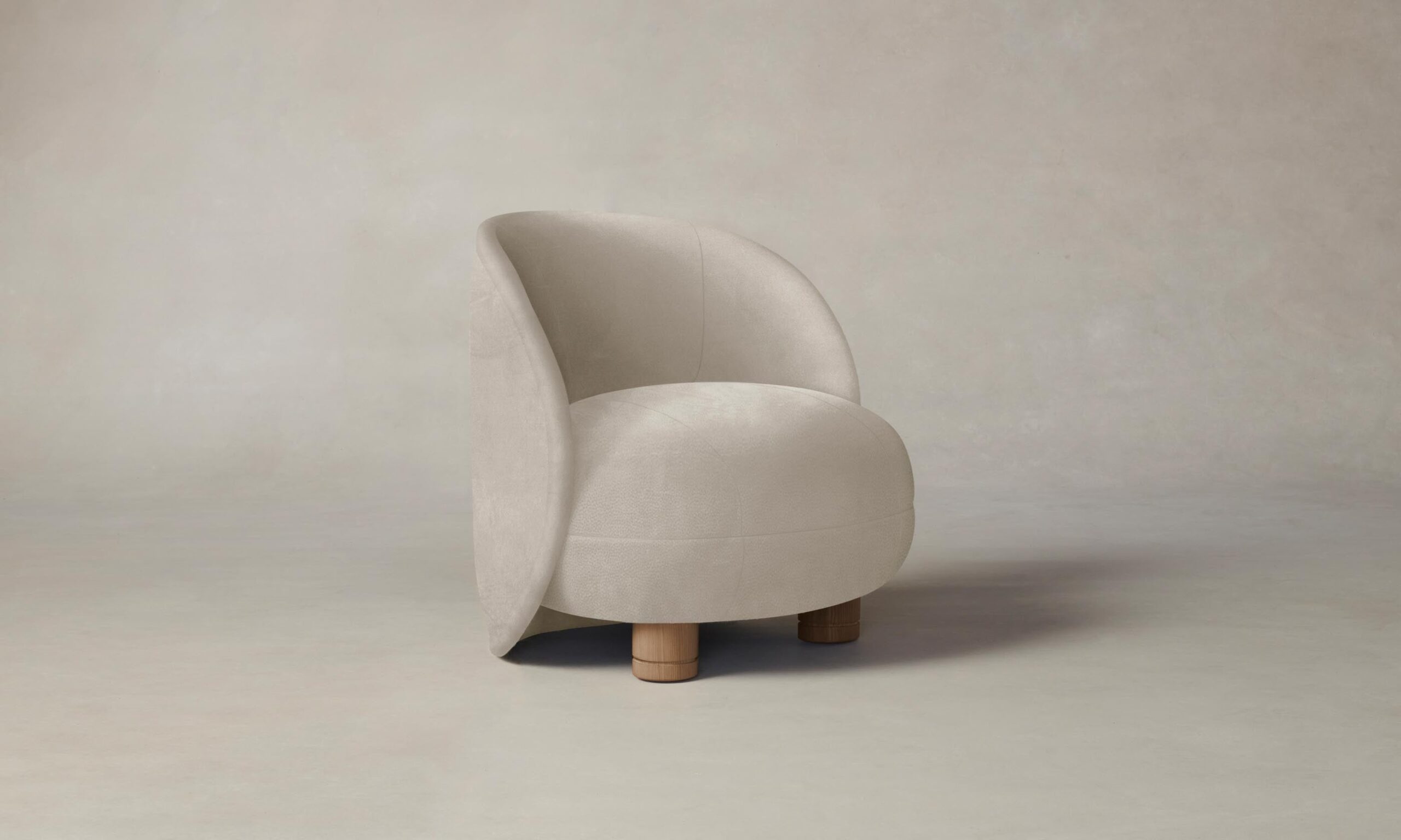 The Laight reimagines the classic slipper chair with a new sense of softness and whimsy. It has a curved, wraparound back and voluminous seat that sits atop lathe-turned legs.