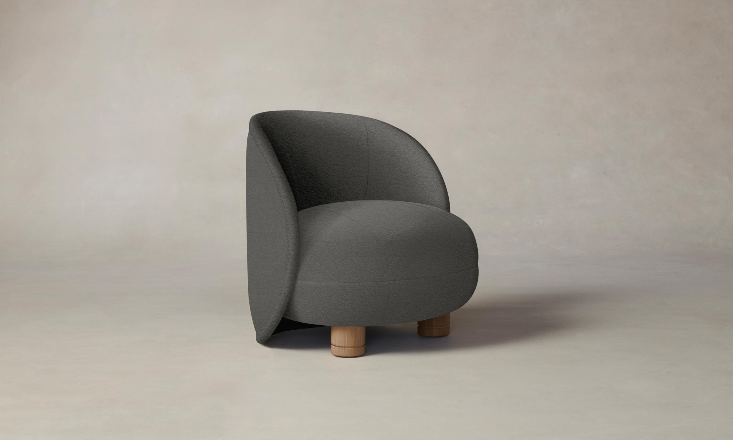 The Laight reimagines the classic slipper chair with a new sense of softness and whimsy. It has a curved, wraparound back and voluminous seat that sits atop lathe-turned legs.