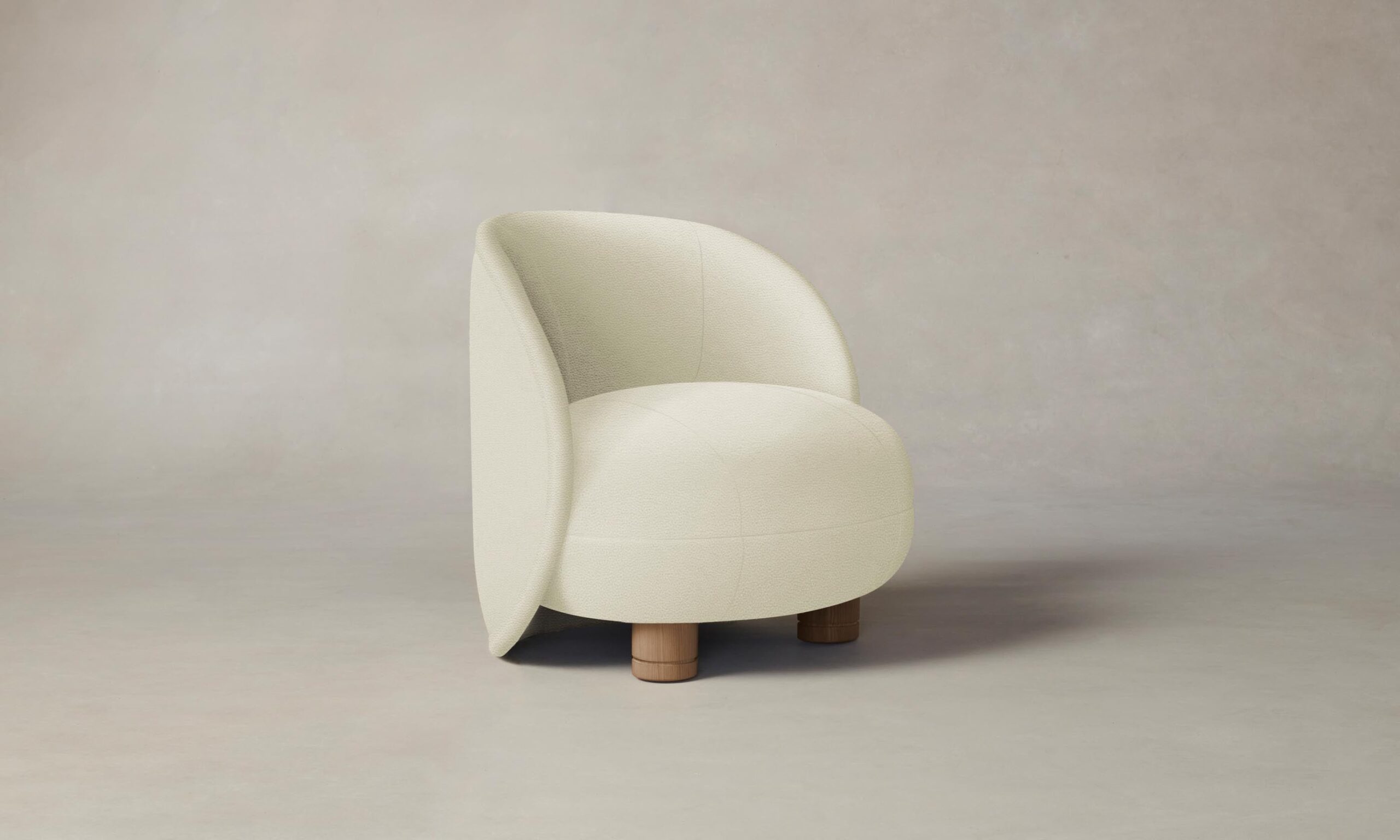 The Laight reimagines the classic slipper chair with a new sense of softness and whimsy. It has a curved, wraparound back and voluminous seat that sits atop lathe-turned legs.