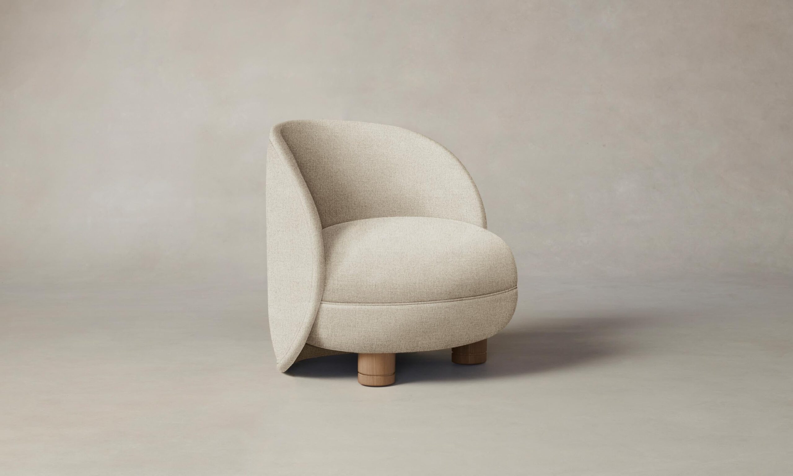 The Laight reimagines the classic slipper chair with a new sense of softness and whimsy. It has a curved, wraparound back and voluminous seat that sits atop lathe-turned legs.