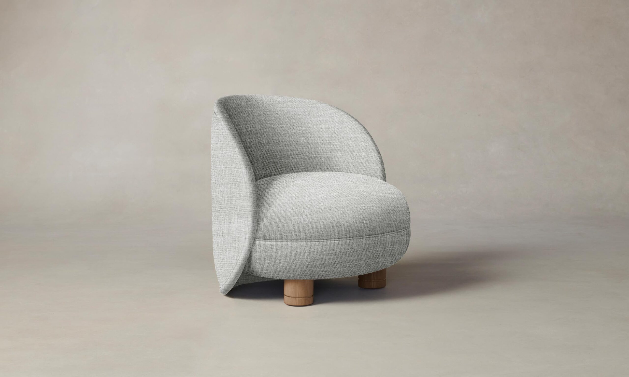 The Laight reimagines the classic slipper chair with a new sense of softness and whimsy. It has a curved, wraparound back and voluminous seat that sits atop lathe-turned legs.
