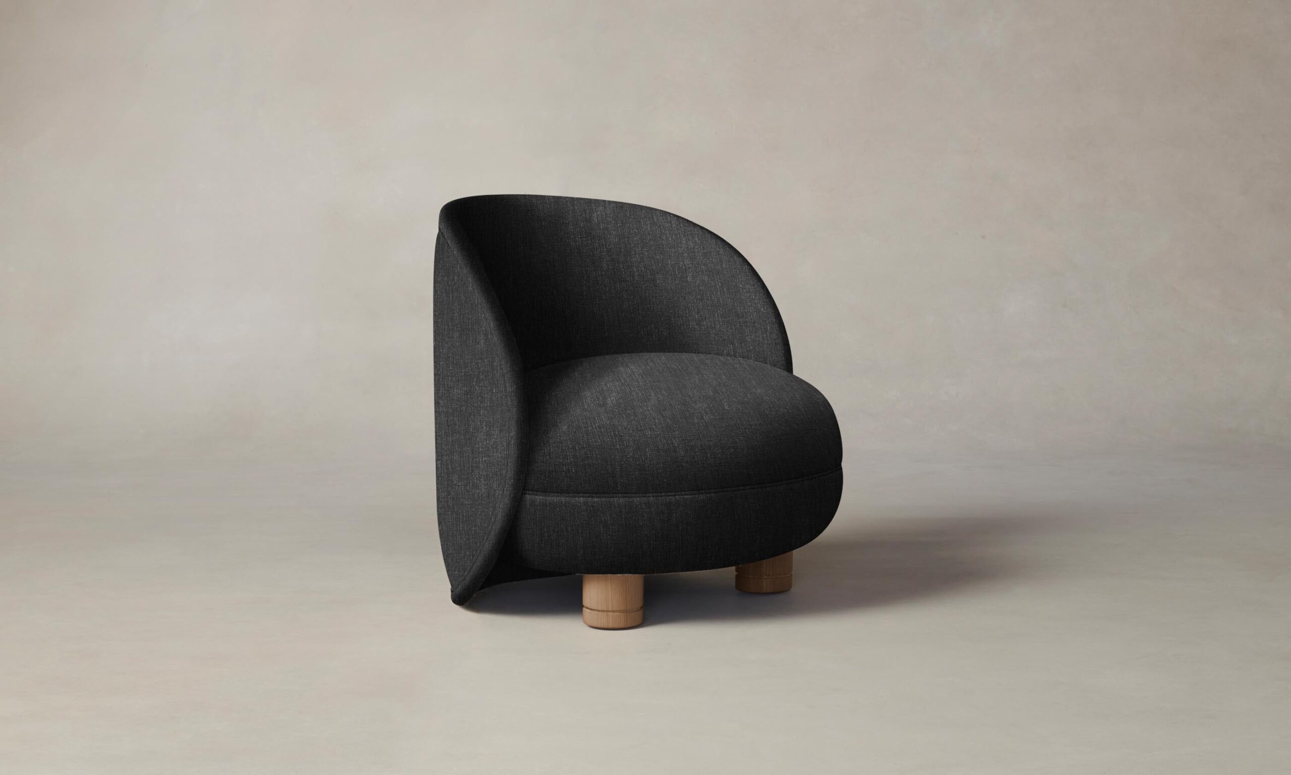 The Laight reimagines the classic slipper chair with a new sense of softness and whimsy. It has a curved, wraparound back and voluminous seat that sits atop lathe-turned legs.