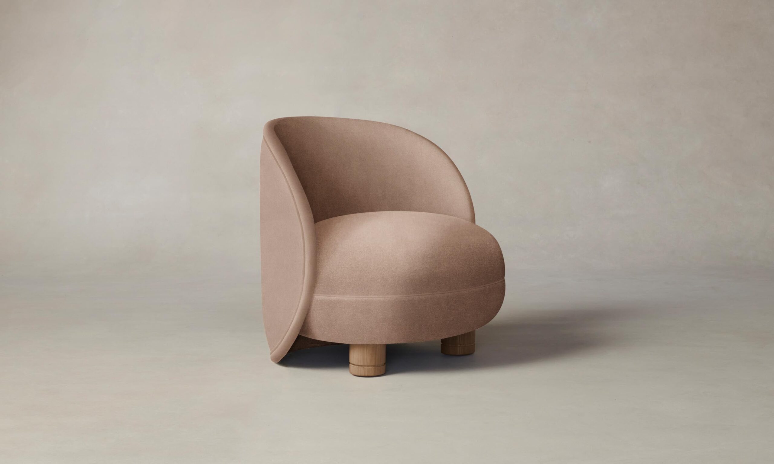 The Laight reimagines the classic slipper chair with a new sense of softness and whimsy. It has a curved, wraparound back and voluminous seat that sits atop lathe-turned legs.