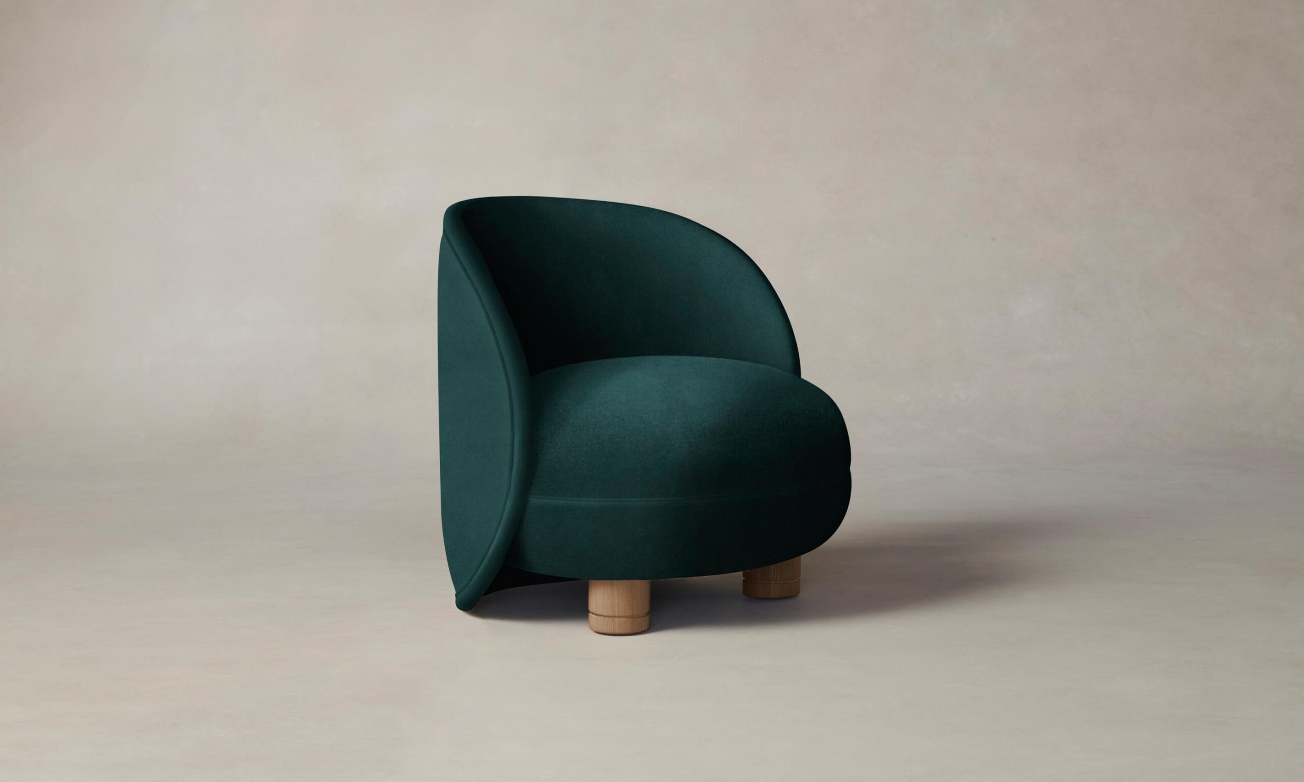 The Laight reimagines the classic slipper chair with a new sense of softness and whimsy. It has a curved, wraparound back and voluminous seat that sits atop lathe-turned legs.