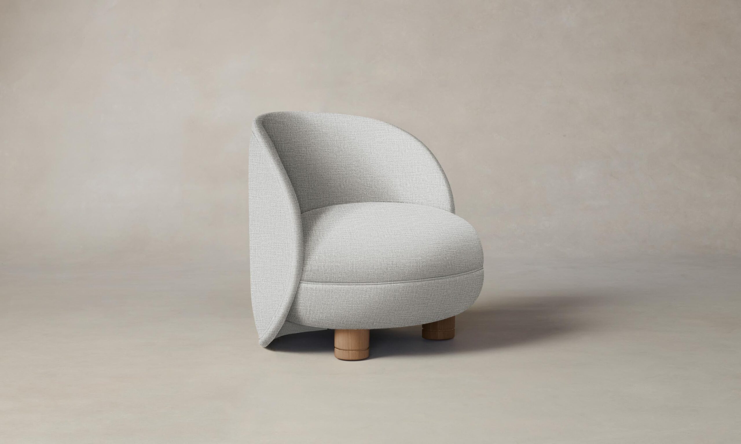 The Laight reimagines the classic slipper chair with a new sense of softness and whimsy. It has a curved, wraparound back and voluminous seat that sits atop lathe-turned legs.