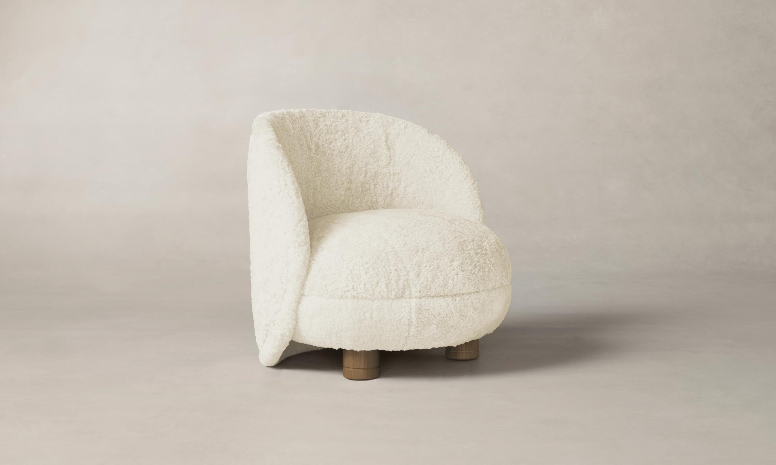 The Laight reimagines the classic slipper chair with a new sense of softness and whimsy. It has a curved, wraparound back and voluminous seat that sits atop lathe-turned legs.