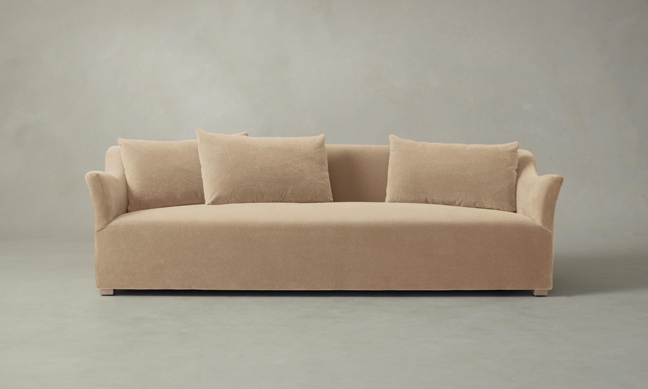 The Lenox sofa is distinguished by its flared silhouette and sloped arms—together, they extend an invitation to relax. The frame is tightly upholstered and set upon recessed legs.