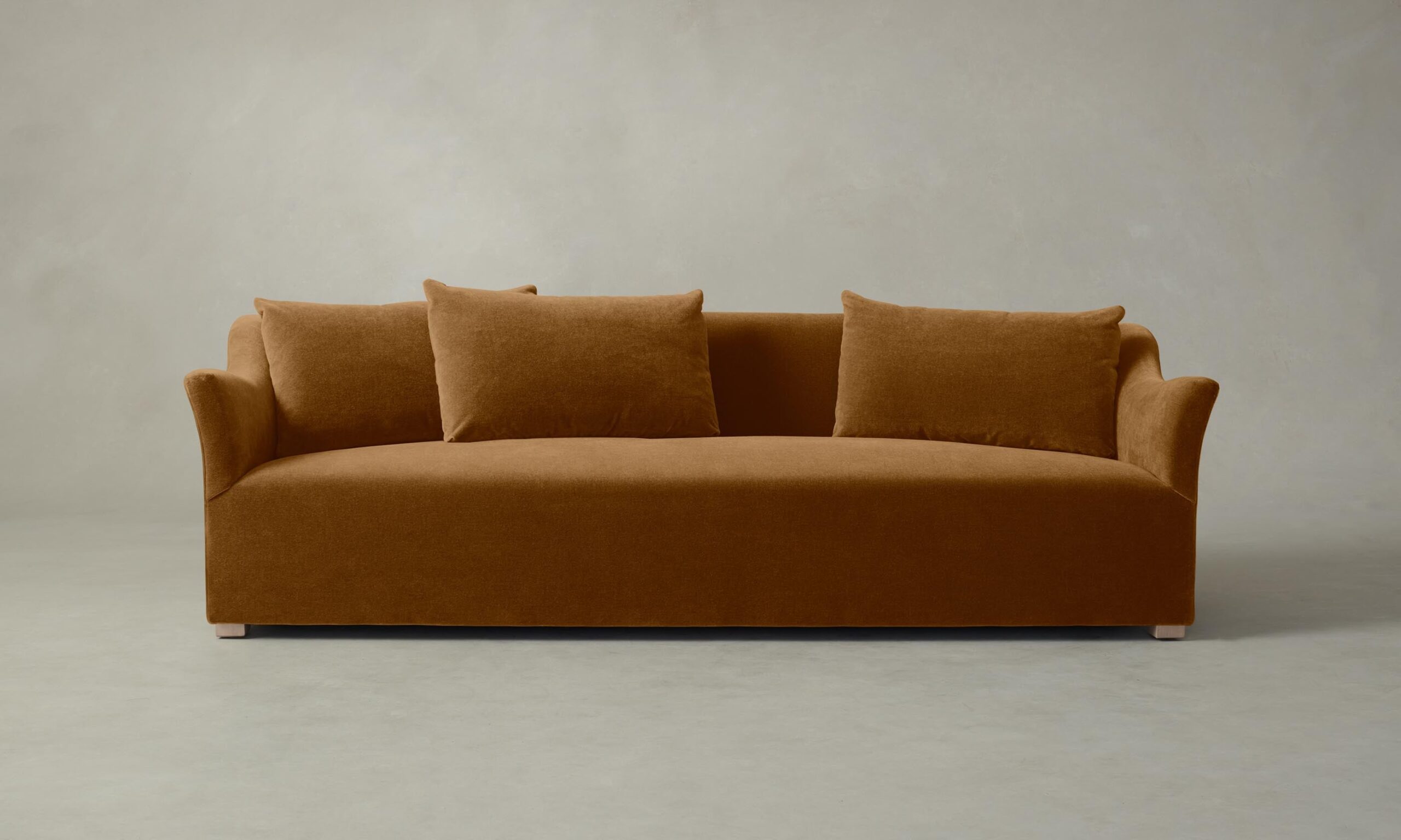 The Lenox sofa is distinguished by its flared silhouette and sloped arms—together, they extend an invitation to relax. The frame is tightly upholstered and set upon recessed legs.