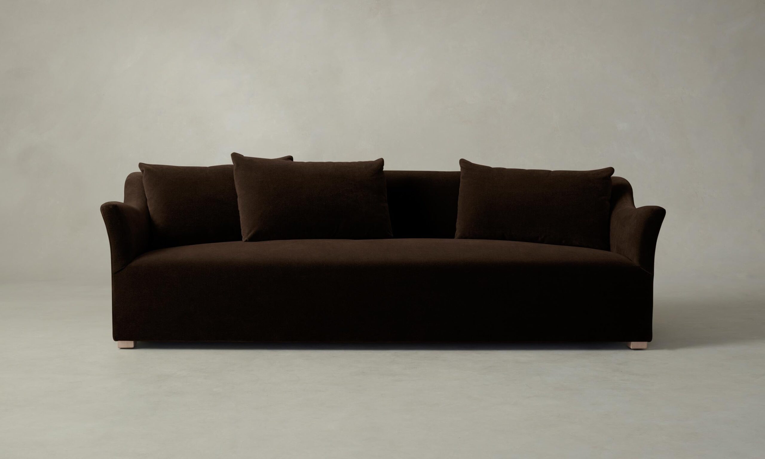 The Lenox sofa is distinguished by its flared silhouette and sloped arms—together, they extend an invitation to relax. The frame is tightly upholstered and set upon recessed legs.