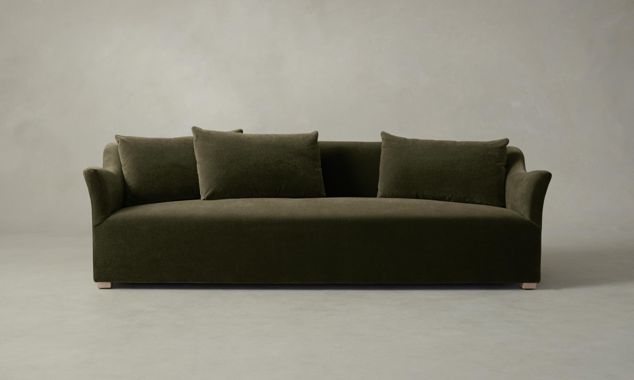 The Lenox sofa is distinguished by its flared silhouette and sloped arms—together, they extend an invitation to relax. The frame is tightly upholstered and set upon recessed legs.