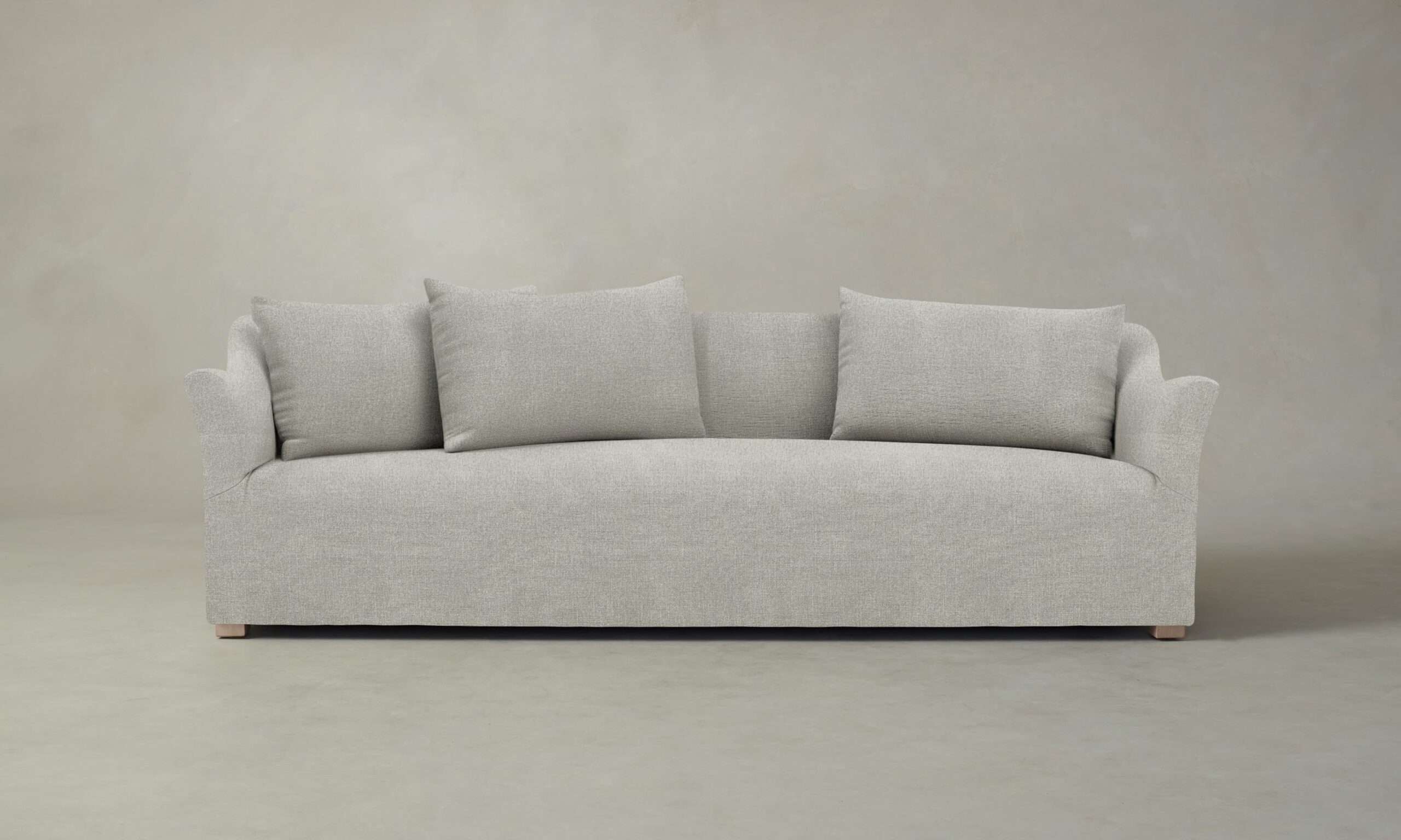 The Lenox sofa is distinguished by its flared silhouette and sloped arms—together, they extend an invitation to relax. The frame is tightly upholstered and set upon recessed legs.