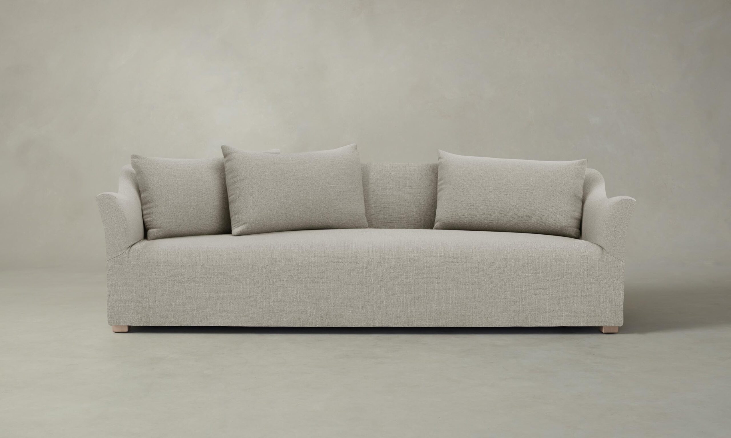The Lenox sofa is distinguished by its flared silhouette and sloped arms—together, they extend an invitation to relax. The frame is tightly upholstered and set upon recessed legs.