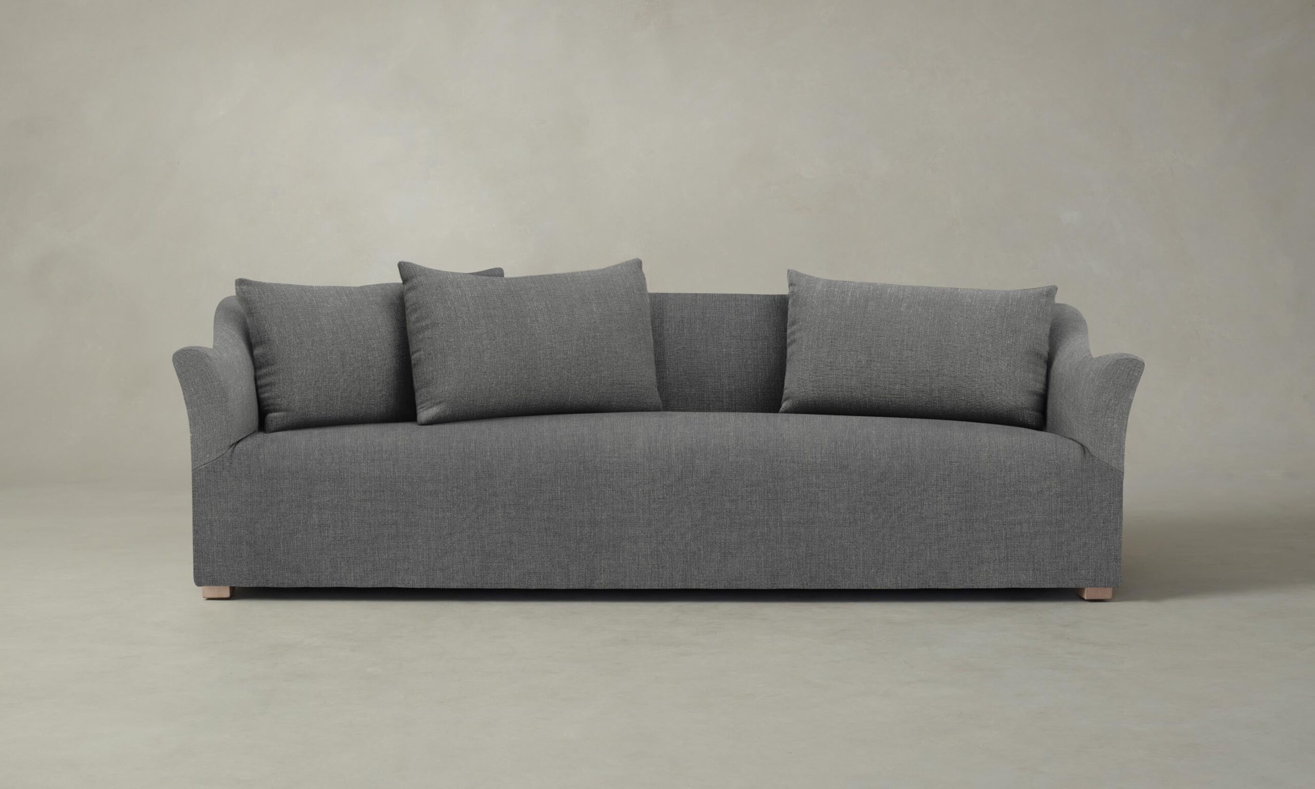 The Lenox sofa is distinguished by its flared silhouette and sloped arms—together, they extend an invitation to relax. The frame is tightly upholstered and set upon recessed legs.