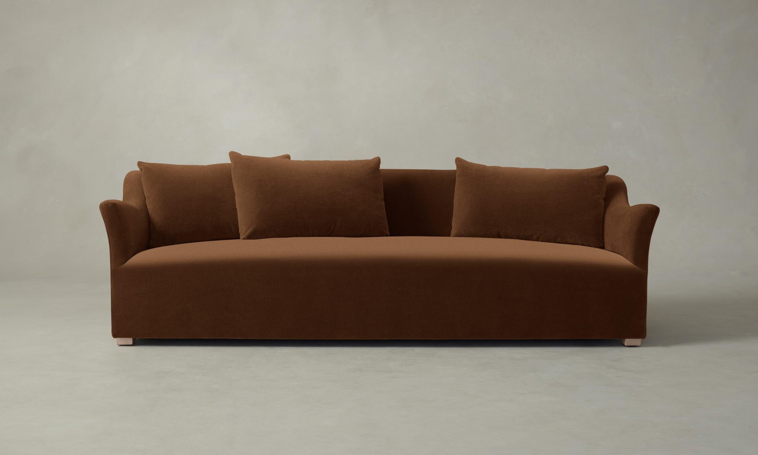 The Lenox sofa is distinguished by its flared silhouette and sloped arms—together, they extend an invitation to relax. The frame is tightly upholstered and set upon recessed legs.