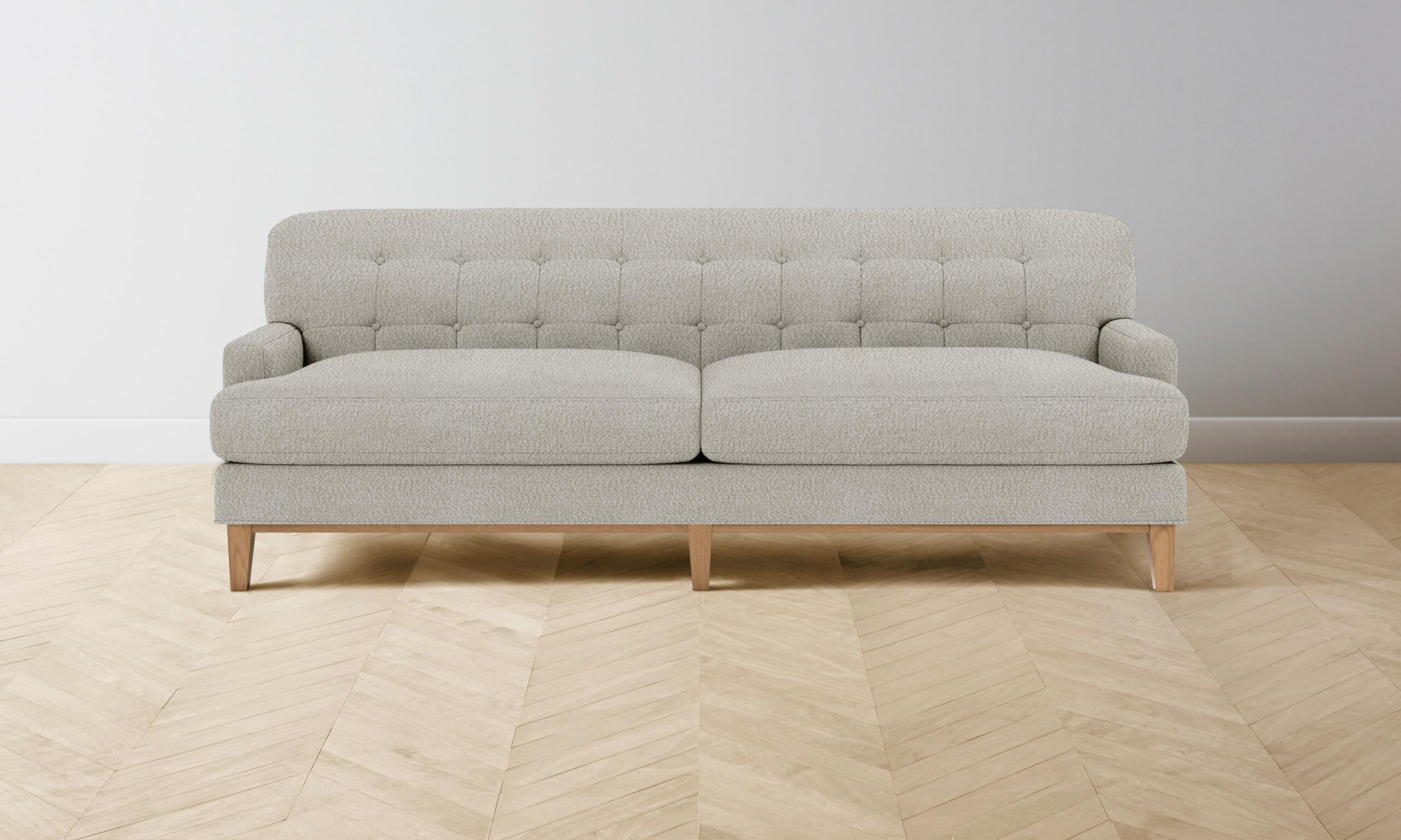With its button-tufted seat back, the Ludlow sofa exudes a mid-century charm. Its deep, reclined seat is framed by linear arms and set upon elegant tapered legs.