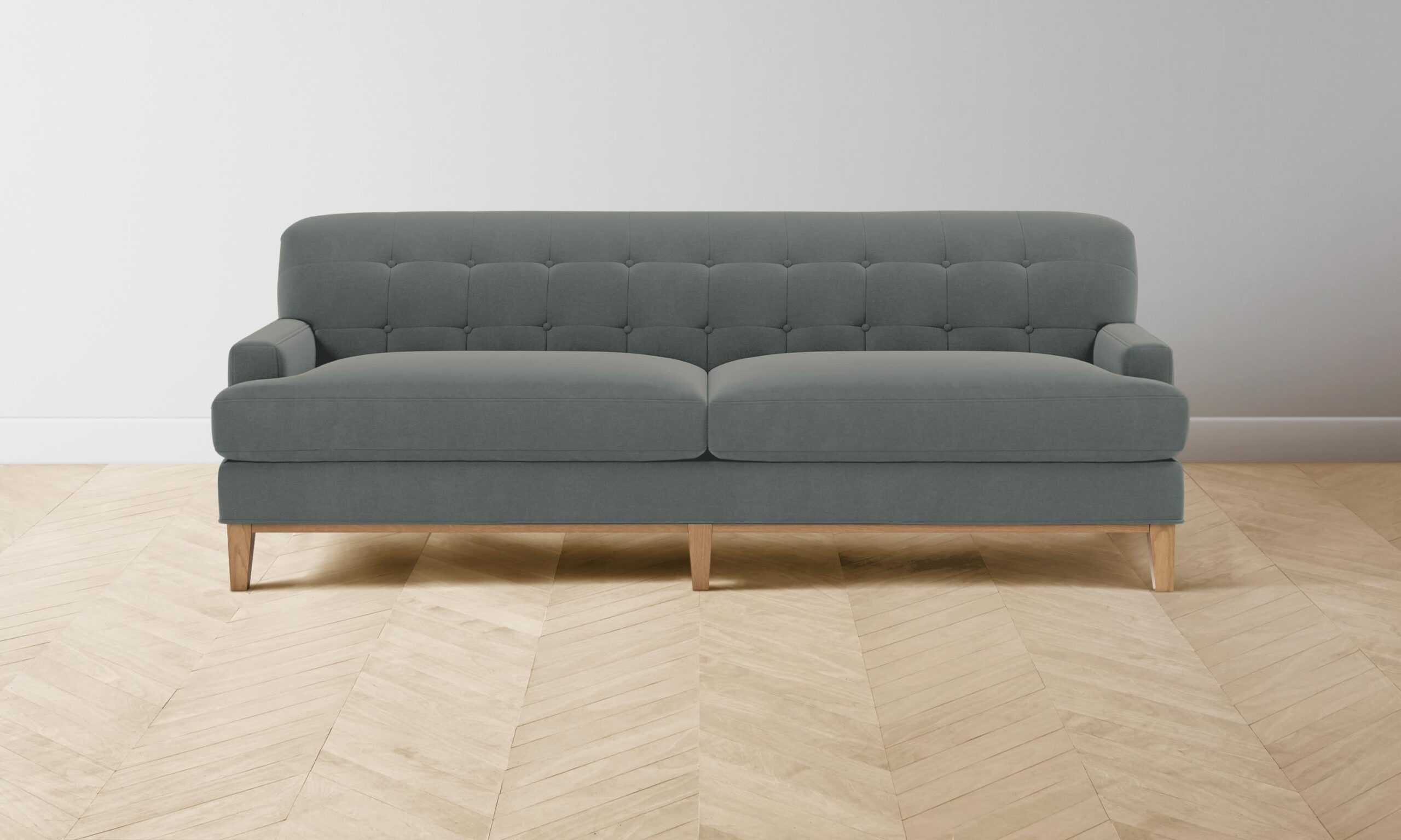 With its button-tufted seat back, the Ludlow sofa exudes a mid-century charm. Its deep, reclined seat is framed by linear arms and set upon elegant tapered legs.