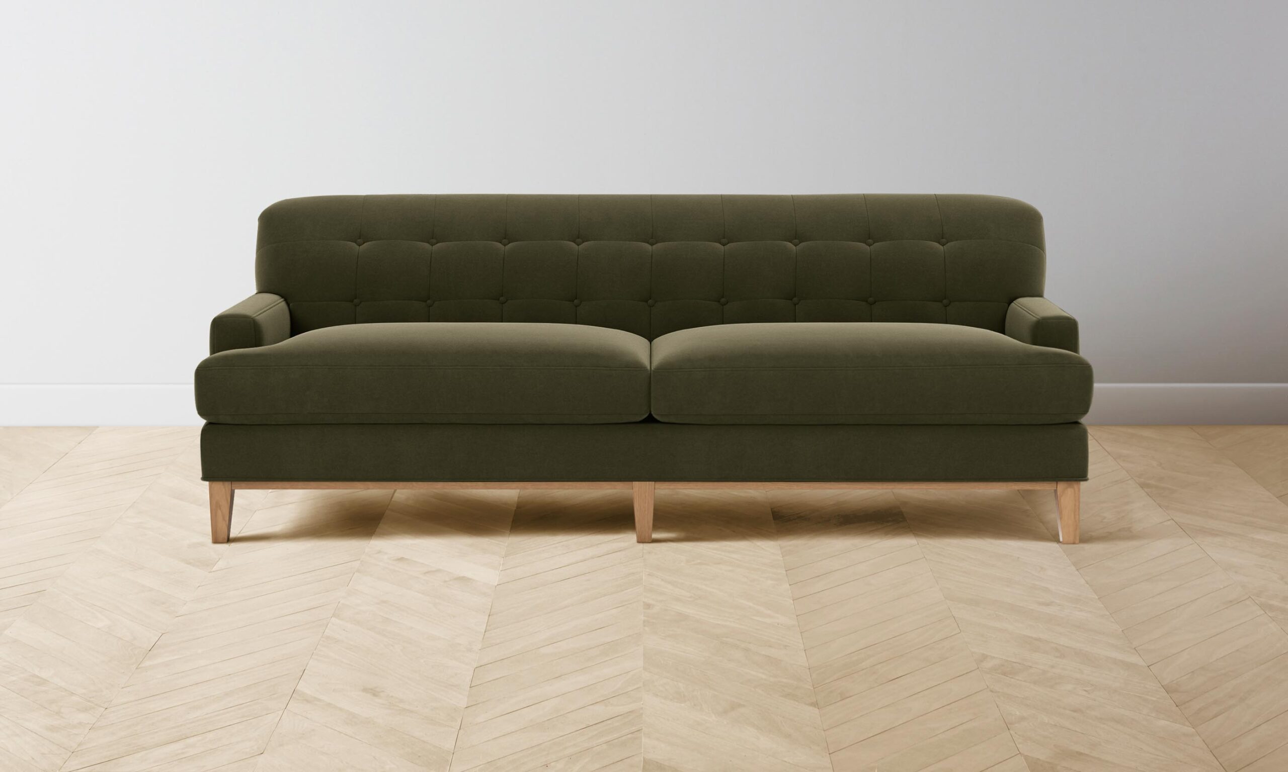 With its button-tufted seat back, the Ludlow sofa exudes a mid-century charm. Its deep, reclined seat is framed by linear arms and set upon elegant tapered legs.
