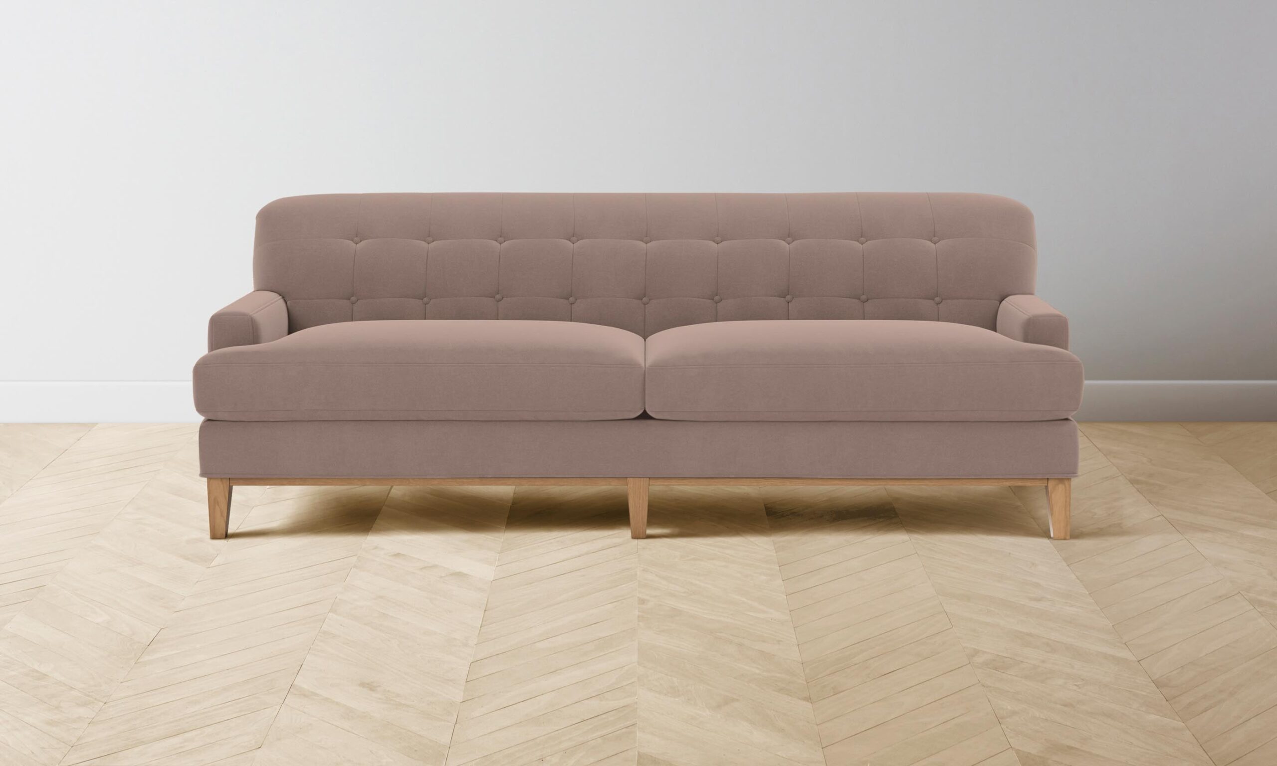 With its button-tufted seat back, the Ludlow sofa exudes a mid-century charm. Its deep, reclined seat is framed by linear arms and set upon elegant tapered legs.