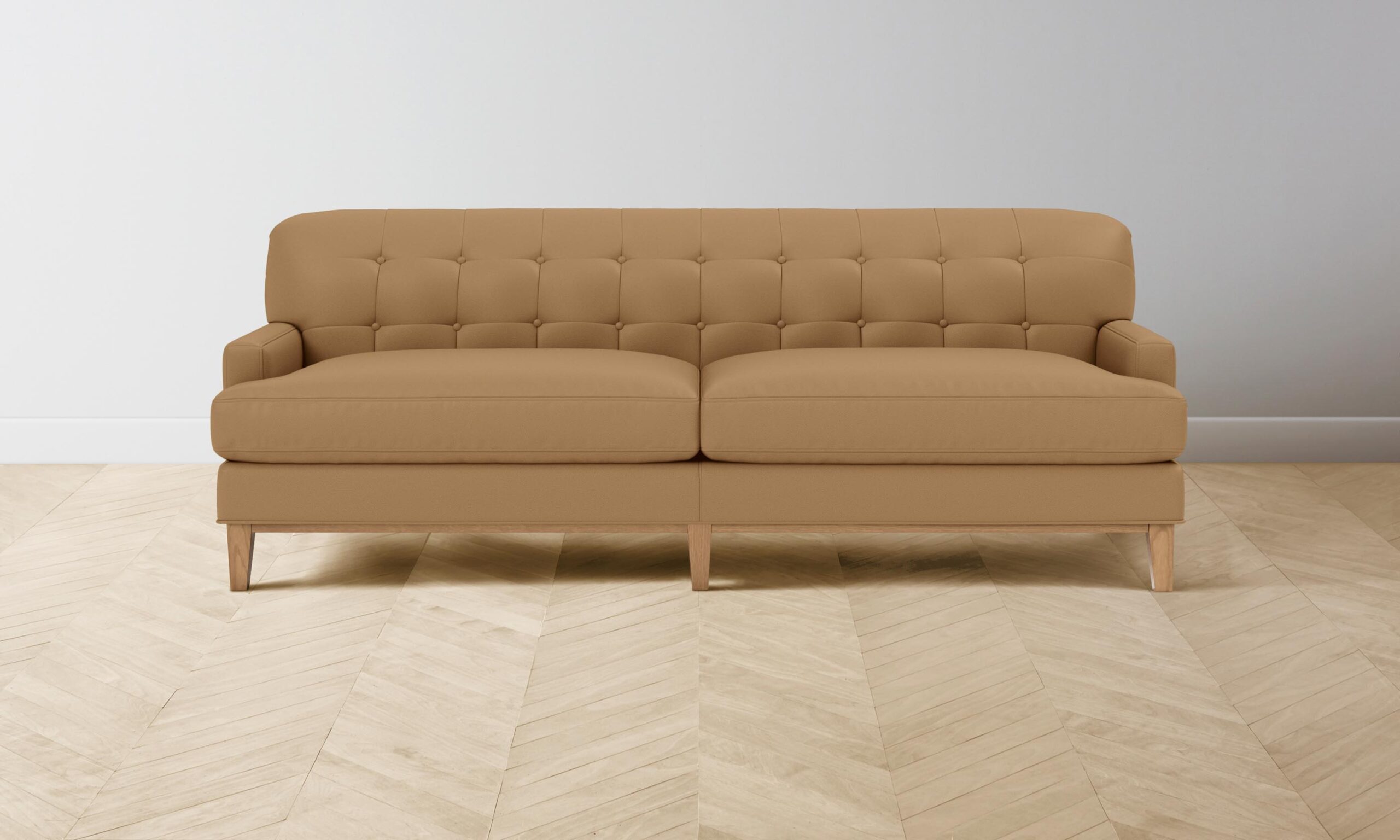 With its button-tufted seat back, the Ludlow sofa exudes a mid-century charm. Its deep, reclined seat is framed by linear arms and set upon elegant tapered legs.